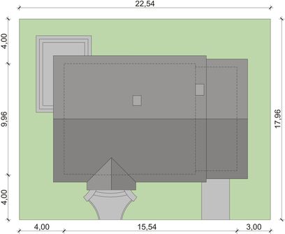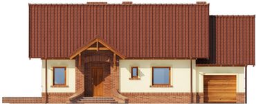 Graficzne opracowanie rzutów poglądowych widocznych na karcie projektu zostało wykonane przez Extradom.pl. Prezentowane przez Extradom.pl wizualizacje wykonane zostały przez autora projektu i należy poczytywać je jedynie za przykład i propozycję wykończenia, wizję architektoniczną autora projektu. Ostateczne wykończenie budynku może nastąpić na wiele sposobów. Szczegółowe rozwiązania zastosowane w oferowanej dokumentacji - w tym również ilość, lokalizacje i wygląd okien, drzwi, kominów - mogą w niewielkim stopniu różnić się od prezentowanej wizualizacji budynku.