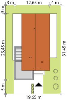 Graficzne opracowanie rzutów poglądowych widocznych na karcie projektu zostało wykonane przez Extradom.pl. Prezentowane przez Extradom.pl wizualizacje wykonane zostały przez autora projektu i należy poczytywać je jedynie za przykład i propozycję wykończenia, wizję architektoniczną autora projektu. Ostateczne wykończenie budynku może nastąpić na wiele sposobów. Szczegółowe rozwiązania zastosowane w oferowanej dokumentacji - w tym również ilość, lokalizacje i wygląd okien, drzwi, kominów - mogą w niewielkim stopniu różnić się od prezentowanej wizualizacji budynku.