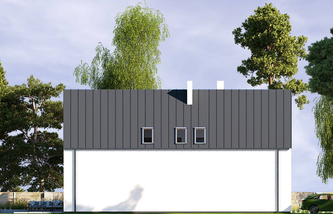 Graficzne opracowanie rzutów poglądowych widocznych na karcie projektu zostało wykonane przez Extradom.pl. Prezentowane przez Extradom.pl wizualizacje wykonane zostały przez autora projektu i należy poczytywać je jedynie za przykład i propozycję wykończenia, wizję architektoniczną autora projektu. Ostateczne wykończenie budynku może nastąpić na wiele sposobów. Szczegółowe rozwiązania zastosowane w oferowanej dokumentacji - w tym również ilość, lokalizacje i wygląd okien, drzwi, kominów - mogą w niewielkim stopniu różnić się od prezentowanej wizualizacji budynku.