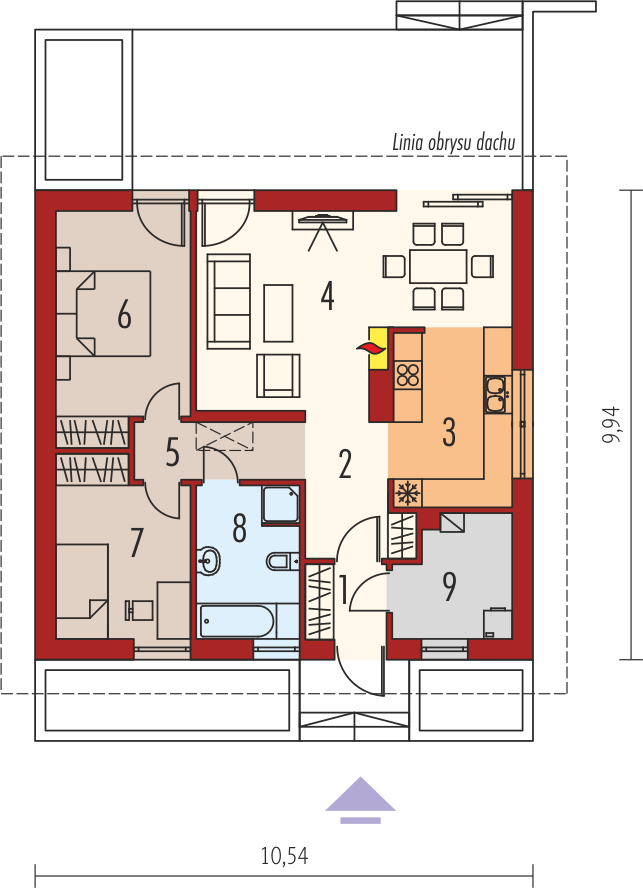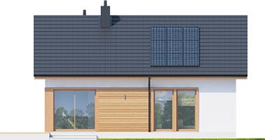 Graficzne opracowanie rzutów poglądowych widocznych na karcie projektu zostało wykonane przez Extradom.pl. Prezentowane przez Extradom.pl wizualizacje wykonane zostały przez autora projektu i należy poczytywać je jedynie za przykład i propozycję wykończenia, wizję architektoniczną autora projektu. Ostateczne wykończenie budynku może nastąpić na wiele sposobów. Szczegółowe rozwiązania zastosowane w oferowanej dokumentacji - w tym również ilość, lokalizacje i wygląd okien, drzwi, kominów - mogą w niewielkim stopniu różnić się od prezentowanej wizualizacji budynku.