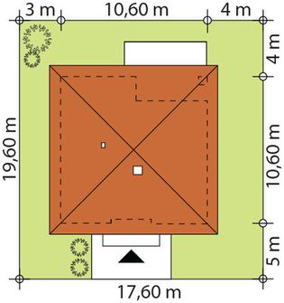 Graficzne opracowanie rzutów poglądowych widocznych na karcie projektu zostało wykonane przez Extradom.pl. Prezentowane przez Extradom.pl wizualizacje wykonane zostały przez autora projektu i należy poczytywać je jedynie za przykład i propozycję wykończenia, wizję architektoniczną autora projektu. Ostateczne wykończenie budynku może nastąpić na wiele sposobów. Szczegółowe rozwiązania zastosowane w oferowanej dokumentacji - w tym również ilość, lokalizacje i wygląd okien, drzwi, kominów - mogą w niewielkim stopniu różnić się od prezentowanej wizualizacji budynku.