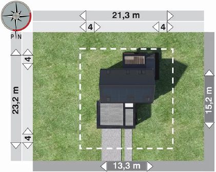Graficzne opracowanie rzutów poglądowych widocznych na karcie projektu zostało wykonane przez Extradom.pl. Prezentowane przez Extradom.pl wizualizacje wykonane zostały przez autora projektu i należy poczytywać je jedynie za przykład i propozycję wykończenia, wizję architektoniczną autora projektu. Ostateczne wykończenie budynku może nastąpić na wiele sposobów. Szczegółowe rozwiązania zastosowane w oferowanej dokumentacji - w tym również ilość, lokalizacje i wygląd okien, drzwi, kominów - mogą w niewielkim stopniu różnić się od prezentowanej wizualizacji budynku.