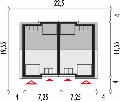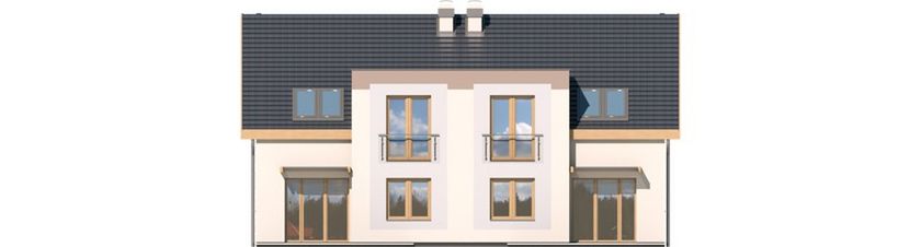 Graficzne opracowanie rzutów poglądowych widocznych na karcie projektu zostało wykonane przez Extradom.pl. Prezentowane przez Extradom.pl wizualizacje wykonane zostały przez autora projektu i należy poczytywać je jedynie za przykład i propozycję wykończenia, wizję architektoniczną autora projektu. Ostateczne wykończenie budynku może nastąpić na wiele sposobów. Szczegółowe rozwiązania zastosowane w oferowanej dokumentacji - w tym również ilość, lokalizacje i wygląd okien, drzwi, kominów - mogą w niewielkim stopniu różnić się od prezentowanej wizualizacji budynku.