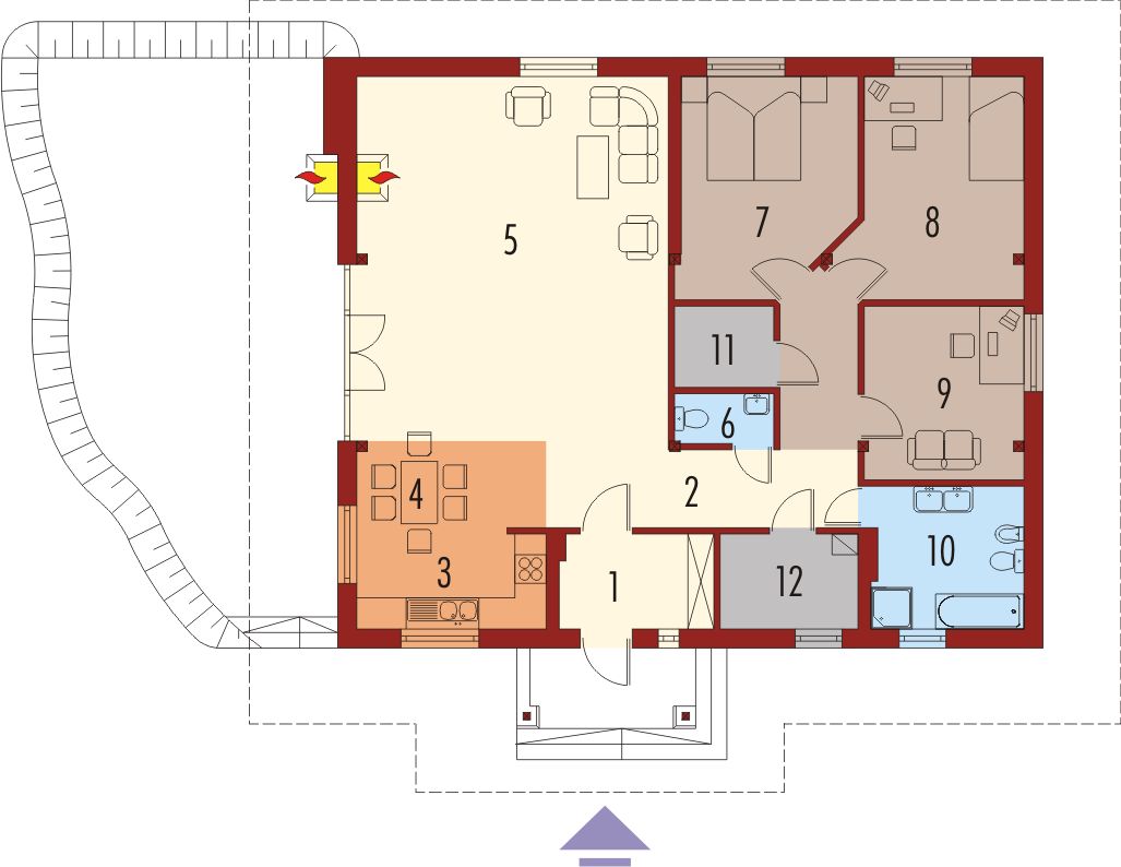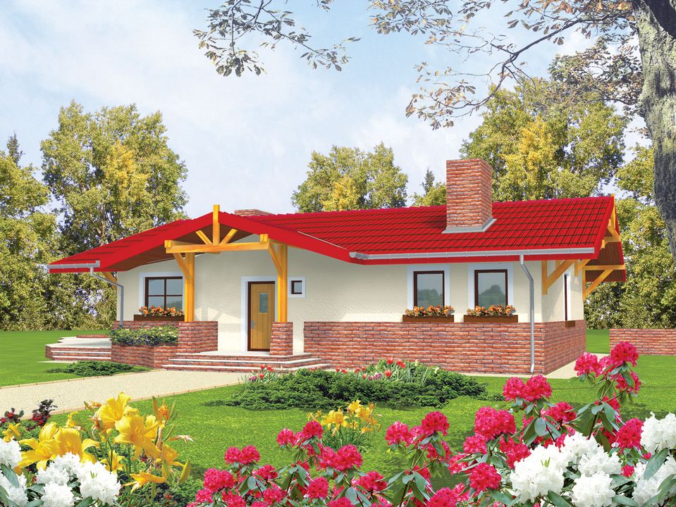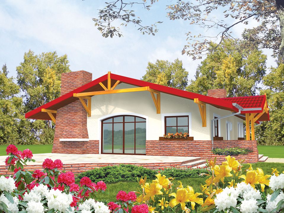 Graficzne opracowanie rzutów poglądowych widocznych na karcie projektu zostało wykonane przez Extradom.pl. Prezentowane przez Extradom.pl wizualizacje wykonane zostały przez autora projektu i należy poczytywać je jedynie za przykład i propozycję wykończenia, wizję architektoniczną autora projektu. Ostateczne wykończenie budynku może nastąpić na wiele sposobów. Szczegółowe rozwiązania zastosowane w oferowanej dokumentacji - w tym również ilość, lokalizacje i wygląd okien, drzwi, kominów - mogą w niewielkim stopniu różnić się od prezentowanej wizualizacji budynku.