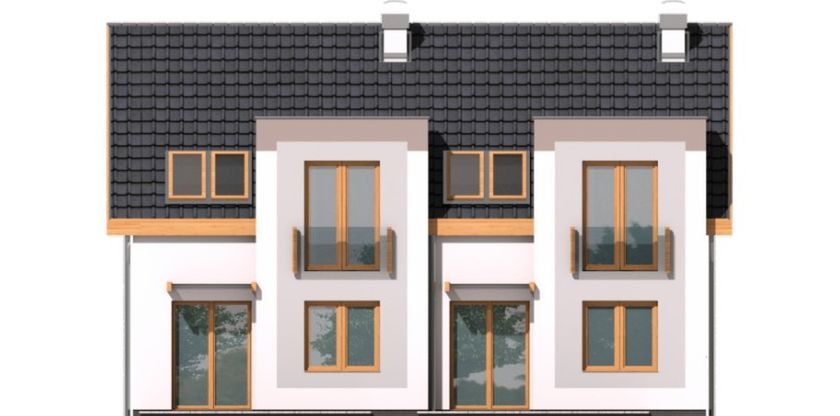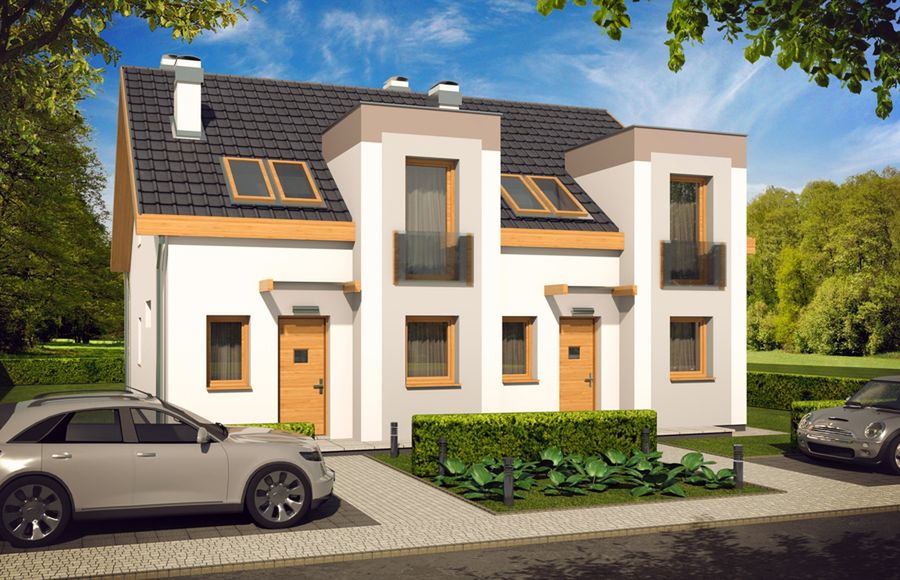 Graficzne opracowanie rzutów poglądowych widocznych na karcie projektu zostało wykonane przez Extradom.pl. Prezentowane przez Extradom.pl wizualizacje wykonane zostały przez autora projektu i należy poczytywać je jedynie za przykład i propozycję wykończenia, wizję architektoniczną autora projektu. Ostateczne wykończenie budynku może nastąpić na wiele sposobów. Szczegółowe rozwiązania zastosowane w oferowanej dokumentacji - w tym również ilość, lokalizacje i wygląd okien, drzwi, kominów - mogą w niewielkim stopniu różnić się od prezentowanej wizualizacji budynku.