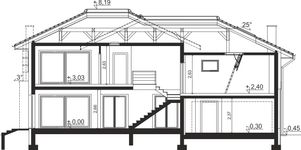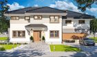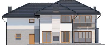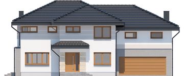 Graficzne opracowanie rzutów poglądowych widocznych na karcie projektu zostało wykonane przez Extradom.pl. Prezentowane przez Extradom.pl wizualizacje wykonane zostały przez autora projektu i należy poczytywać je jedynie za przykład i propozycję wykończenia, wizję architektoniczną autora projektu. Ostateczne wykończenie budynku może nastąpić na wiele sposobów. Szczegółowe rozwiązania zastosowane w oferowanej dokumentacji - w tym również ilość, lokalizacje i wygląd okien, drzwi, kominów - mogą w niewielkim stopniu różnić się od prezentowanej wizualizacji budynku.