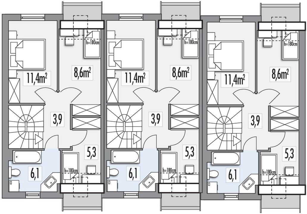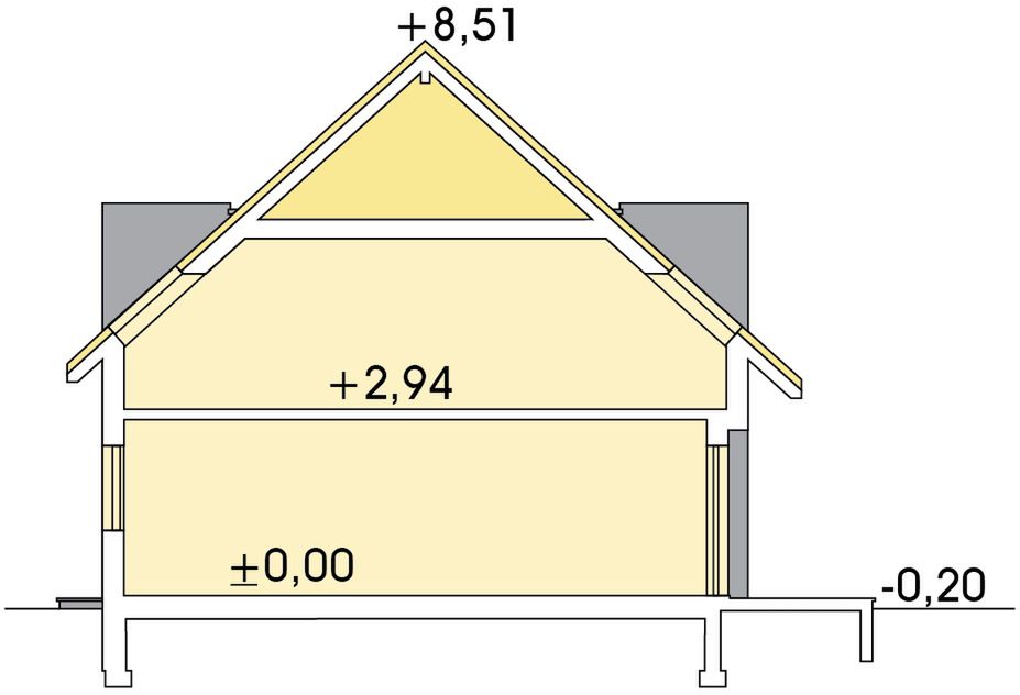 Strop: żelbetowy monolityczny. Ściany zewnętrzne: gazobeton 20cm + styropian 15cm. Pokrycie dachowe: dachówka ceramiczna. Okna połaciowe: Fakro.