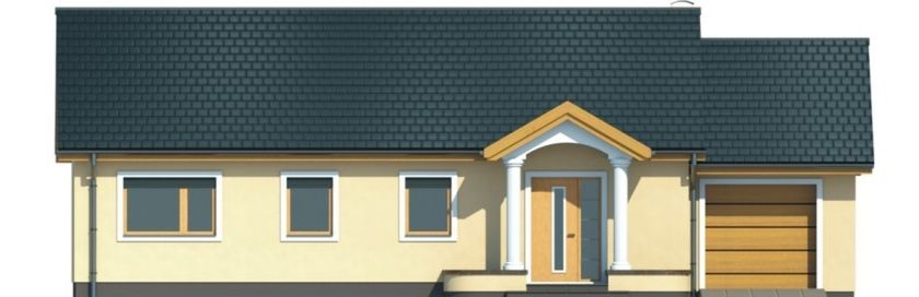 Graficzne opracowanie rzutów poglądowych widocznych na karcie projektu zostało wykonane przez Extradom.pl. Prezentowane przez Extradom.pl wizualizacje wykonane zostały przez autora projektu i należy poczytywać je jedynie za przykład i propozycję wykończenia, wizję architektoniczną autora projektu. Ostateczne wykończenie budynku może nastąpić na wiele sposobów. Szczegółowe rozwiązania zastosowane w oferowanej dokumentacji - w tym również ilość, lokalizacje i wygląd okien, drzwi, kominów - mogą w niewielkim stopniu różnić się od prezentowanej wizualizacji budynku.