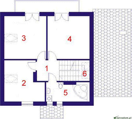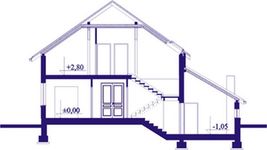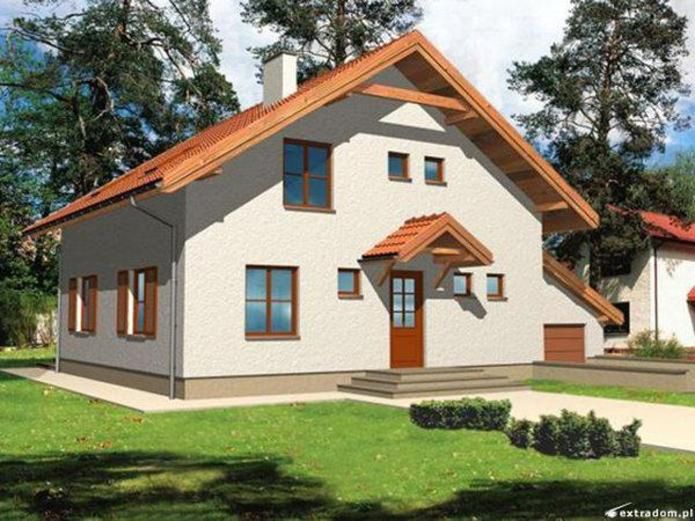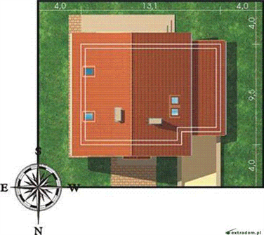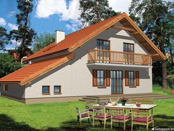 Graficzne opracowanie rzutów poglądowych widocznych na karcie projektu zostało wykonane przez Extradom.pl. Prezentowane przez Extradom.pl wizualizacje wykonane zostały przez autora projektu i należy poczytywać je jedynie za przykład i propozycję wykończenia, wizję architektoniczną autora projektu. Ostateczne wykończenie budynku może nastąpić na wiele sposobów. Szczegółowe rozwiązania zastosowane w oferowanej dokumentacji - w tym również ilość, lokalizacje i wygląd okien, drzwi, kominów - mogą w niewielkim stopniu różnić się od prezentowanej wizualizacji budynku.
