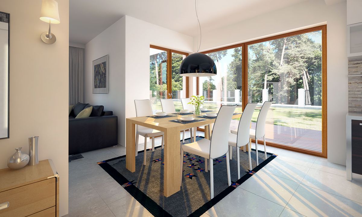 Od początku zależało nam na domu o jednej kondygnacji, a spośród propozycji budynków parterowych jakie obejrzeliśmy, finalnie zdecydowaliśmy się na realizację projektu domu Endo 2 BSE1039. Głównym powodem naszej decyzji było to, iż przewidziany w nim układ pomieszczeń idealnie pasował do usytuowania naszej działki względem stron świata. Dodatkowo, metraż domu wydał się nam być w całości dopasowany do potrzeb naszej rodziny. Oryginalny projekt musieliśmy zaadaptować do warunków określonych w planie zagospodarowania przestrzennego obowiązującego w naszej miejscowości, ale na szczęście nie mieliśmy z tym żadnych trudności. Cała budowa odbyła się sprawnie, bez problemów i zajęła nam ok. 1,5 roku. Inwestycję rozpoczęliśmy w czerwcu 2014 r., a do nowego domu wprowadziliśmy się już w październiku 2015 r.Budynek został postawiony z ceramicznych pustaków Porotherm, a dach pokryliśmy dachówką ceramiczną. Zmieniliśmy zalecaną metodę wykonania stropu i zamiast drewnianej konstrukcji wykonaliśmy go systemem Teriva. Po podliczeniu wszystkich kosztów związanych z naszą budową odnotowałem, iż były one o 10 % wyższe od kwoty podanej w kosztorysie. Myślę jednak, że miało to związek z tym, iż architekt uwzględnił w nim uśrednione ceny, a my budowaliśmy w Wielkopolsce, gdzie koszty robocizny w tych latach były nieco wyższe w stosunku do innych rejonów Polski.Zdecydowaliśmy się na ogrzewanie za pomocą pompy ciepła. Co prawda, koszty związane z odwiertami oraz instalacją pompy są dosyć wysokie, jednak już jej późniejsza eksploatacja jest bardzo ekonomiczna. Pompą ogrzewamy zarówno pomieszczenia, jak i wodę użytkową, a koszty tego rozwiązania w sezonie grzewczym wynoszą nas ok. 100 zł miesięcznie.Projekt domu Endo 2 BSE1039 przewiduje sporych rozmiarów taras, jednak my uznaliśmy, że nie ma potrzeby aby był on tak duży i postanowiliśmy go zmniejszyć. Innymi zmianami było zrobienie wjazdu do garażu od strony głównego wejścia oraz przeniesienie do niego wyłazu prowadzącego na strych. Na chwilę obecną myślę też, że dobrym pomysłem byłoby podwyższenie dachu o ok. 20 cm, gdyż wchodząc na poddasze musimy uważać, aby nie zahaczyć głową o połać. Układ pomieszczeń zaproponowany w projekcie domu parterowego Endo 2 BSE1039 od początku przypadł nam do gustu, dlatego też uznaliśmy że najlepszym rozwiązaniem będzie wykonanie go w całości zgodnie z oryginalną wersją i w dalszym ciągu uważam, że była to dobra decyzja. Wnętrze domu jest funkcjonalne i komfortowe w codziennym użytkowaniu. Z pewnością na duży plus zasługuje widoczny podział domu na wypoczynkową część dzienną oraz strefę nocną dającą domownikom poczucie prywatności. Pozdrawiam.