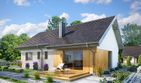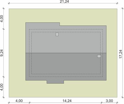 Graficzne opracowanie rzutów poglądowych widocznych na karcie projektu zostało wykonane przez Extradom.pl. Prezentowane przez Extradom.pl wizualizacje wykonane zostały przez autora projektu i należy poczytywać je jedynie za przykład i propozycję wykończenia, wizję architektoniczną autora projektu. Ostateczne wykończenie budynku może nastąpić na wiele sposobów. Szczegółowe rozwiązania zastosowane w oferowanej dokumentacji - w tym również ilość, lokalizacje i wygląd okien, drzwi, kominów - mogą w niewielkim stopniu różnić się od prezentowanej wizualizacji budynku.