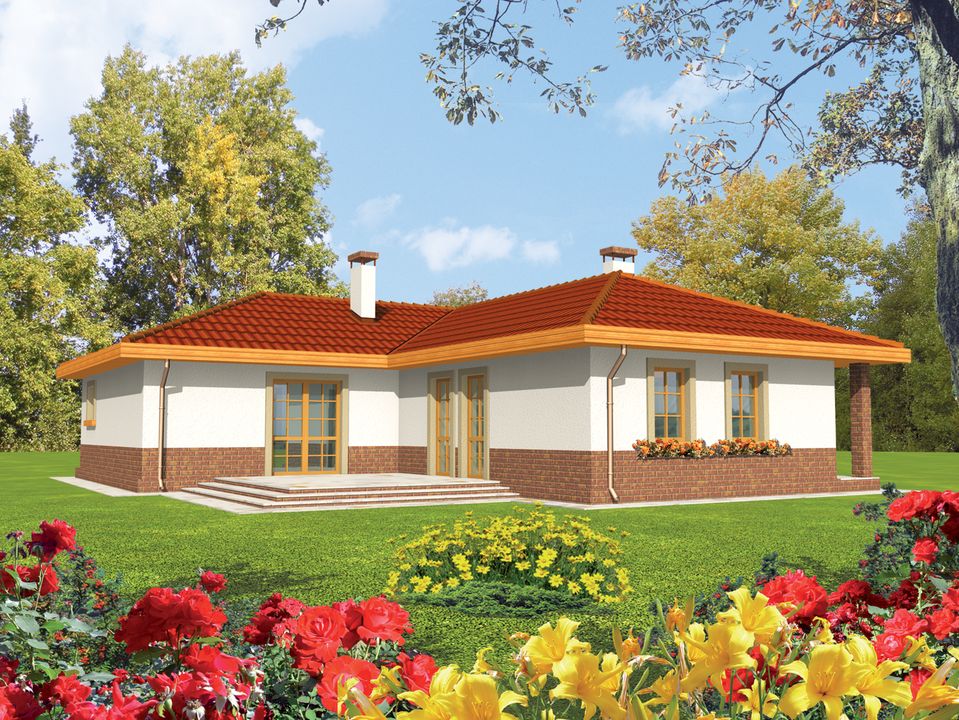 Graficzne opracowanie rzutów poglądowych widocznych na karcie projektu zostało wykonane przez Extradom.pl. Prezentowane przez Extradom.pl wizualizacje wykonane zostały przez autora projektu i należy poczytywać je jedynie za przykład i propozycję wykończenia, wizję architektoniczną autora projektu. Ostateczne wykończenie budynku może nastąpić na wiele sposobów. Szczegółowe rozwiązania zastosowane w oferowanej dokumentacji - w tym również ilość, lokalizacje i wygląd okien, drzwi, kominów - mogą w niewielkim stopniu różnić się od prezentowanej wizualizacji budynku.