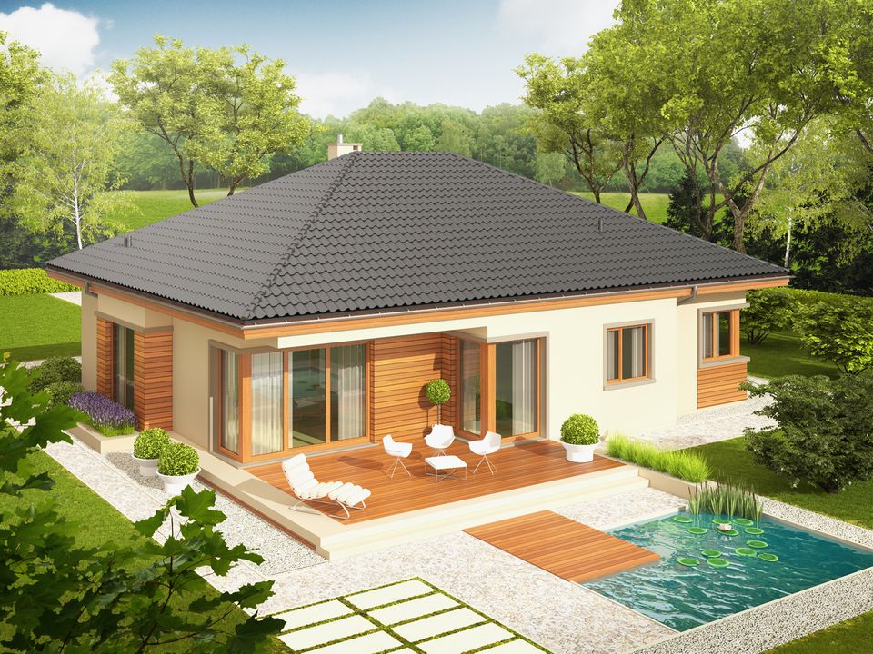 Ściany zewnętrzne: murowane, ściany zewnętrzne dwuwarstwowe, docieplenie grubości 25 cm. Strop: gęstożebrowy. Dach: konstrukcja drewniana, ocieplenie wełna mineralna, dachówka ceramiczna. Ogrzewanie: kocioł gazowy, rozprowadzenie ciepła: grzejniki. Wentylacja: grawitacyjna. Elewacje: tynk mineralny, okładzina drewniana, cokół kamienny lub wykończony tynkiem. Stolarka: drewniana lub PCV, drzwi wejściowe i brama garażowa firmy Hörmann.