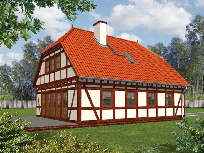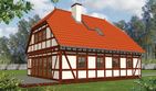 Graficzne opracowanie rzutów poglądowych widocznych na karcie projektu zostało wykonane przez Extradom.pl. Prezentowane przez Extradom.pl wizualizacje wykonane zostały przez autora projektu i należy poczytywać je jedynie za przykład i propozycję wykończenia, wizję architektoniczną autora projektu. Ostateczne wykończenie budynku może nastąpić na wiele sposobów. Szczegółowe rozwiązania zastosowane w oferowanej dokumentacji - w tym również ilość, lokalizacje i wygląd okien, drzwi, kominów - mogą w niewielkim stopniu różnić się od prezentowanej wizualizacji budynku.