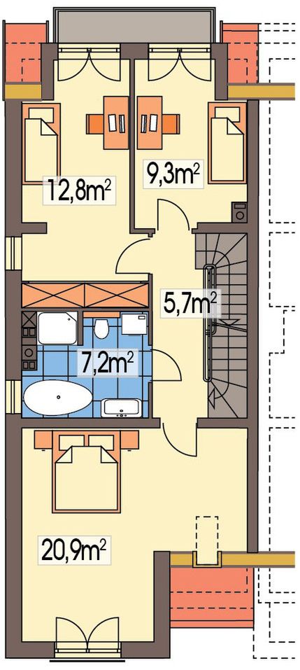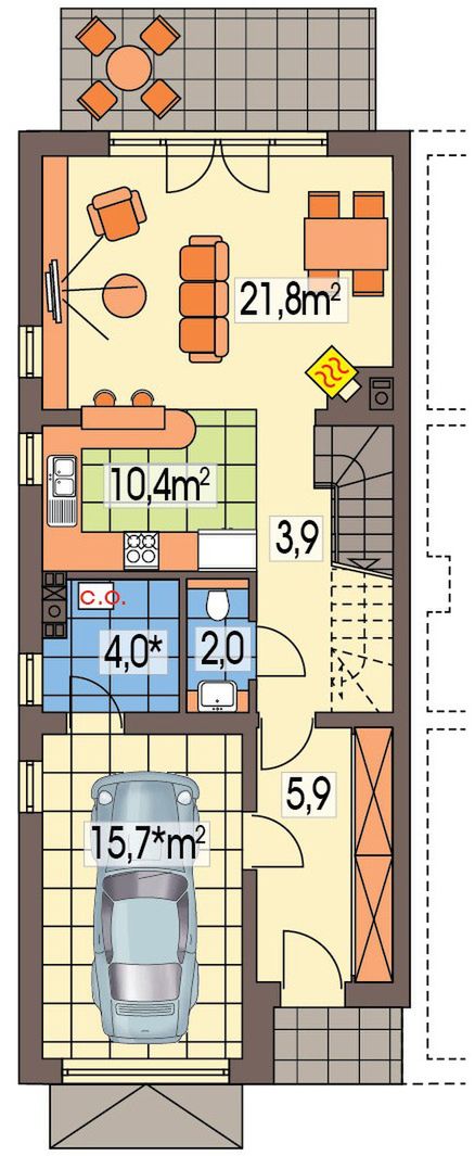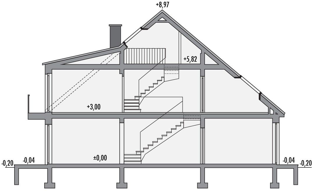 Graficzne opracowanie rzutów poglądowych widocznych na karcie projektu zostało wykonane przez Extradom.pl. Prezentowane przez Extradom.pl wizualizacje wykonane zostały przez autora projektu i należy poczytywać je jedynie za przykład i propozycję wykończenia, wizję architektoniczną autora projektu. Ostateczne wykończenie budynku może nastąpić na wiele sposobów. Szczegółowe rozwiązania zastosowane w oferowanej dokumentacji - w tym również ilość, lokalizacje i wygląd okien, drzwi, kominów - mogą w niewielkim stopniu różnić się od prezentowanej wizualizacji budynku.