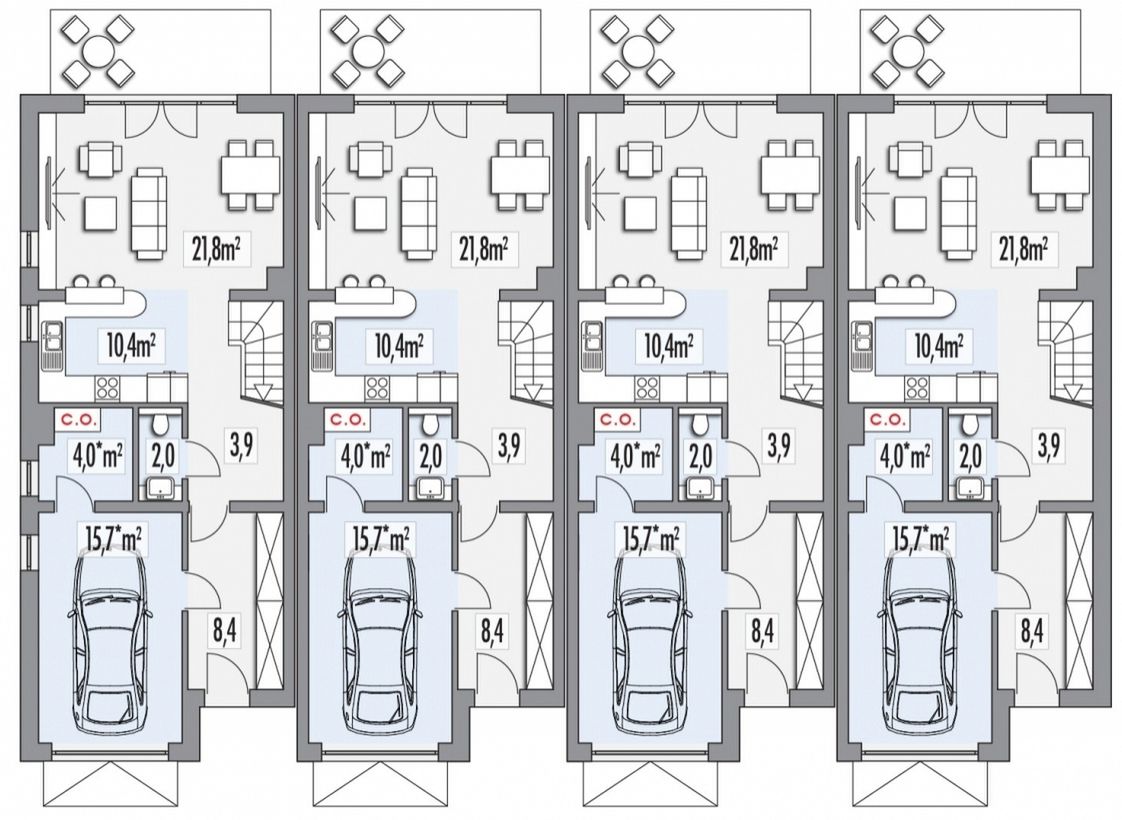 Graficzne opracowanie rzutów poglądowych widocznych na karcie projektu zostało wykonane przez Extradom.pl. Prezentowane przez Extradom.pl wizualizacje wykonane zostały przez autora projektu i należy poczytywać je jedynie za przykład i propozycję wykończenia, wizję architektoniczną autora projektu. Ostateczne wykończenie budynku może nastąpić na wiele sposobów. Szczegółowe rozwiązania zastosowane w oferowanej dokumentacji - w tym również ilość, lokalizacje i wygląd okien, drzwi, kominów - mogą w niewielkim stopniu różnić się od prezentowanej wizualizacji budynku.
