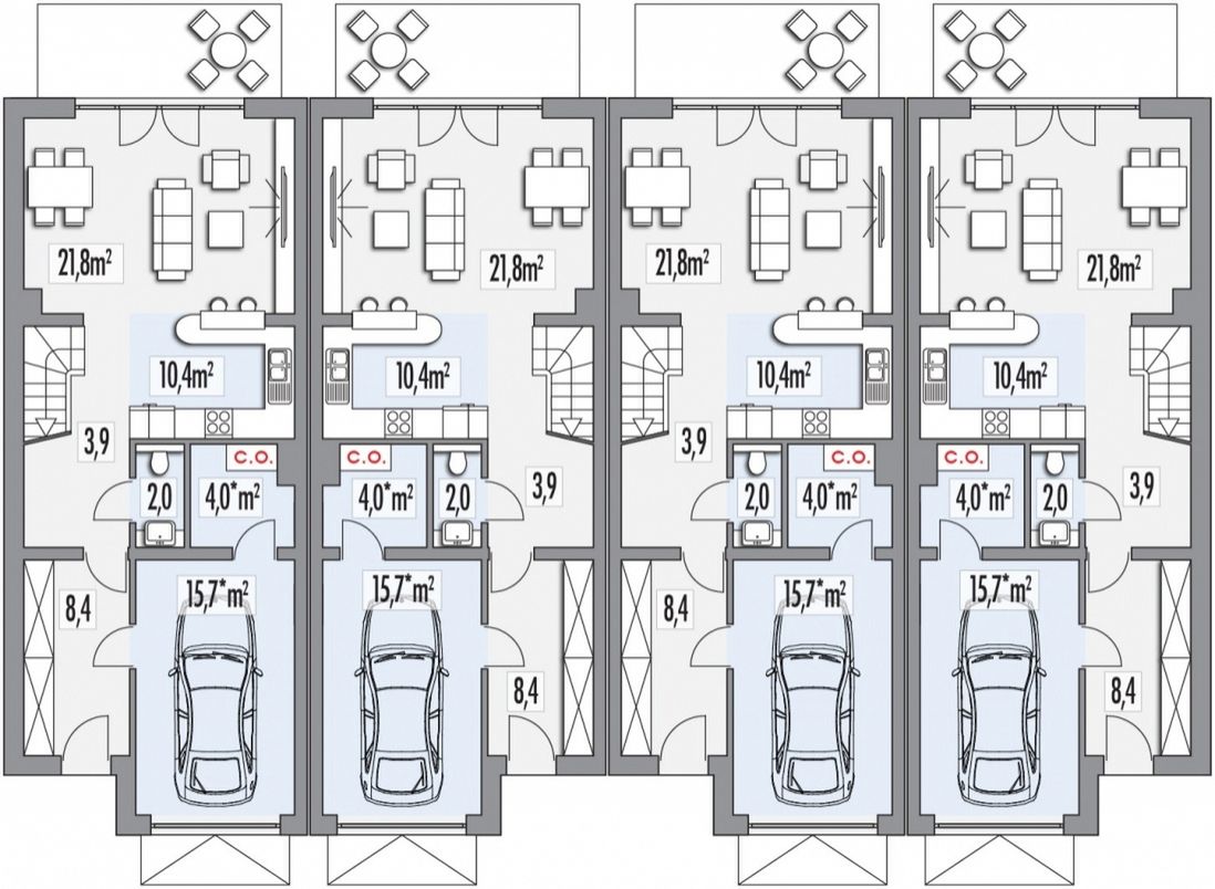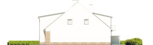 Graficzne opracowanie rzutów poglądowych widocznych na karcie projektu zostało wykonane przez Extradom.pl. Prezentowane przez Extradom.pl wizualizacje wykonane zostały przez autora projektu i należy poczytywać je jedynie za przykład i propozycję wykończenia, wizję architektoniczną autora projektu. Ostateczne wykończenie budynku może nastąpić na wiele sposobów. Szczegółowe rozwiązania zastosowane w oferowanej dokumentacji - w tym również ilość, lokalizacje i wygląd okien, drzwi, kominów - mogą w niewielkim stopniu różnić się od prezentowanej wizualizacji budynku.