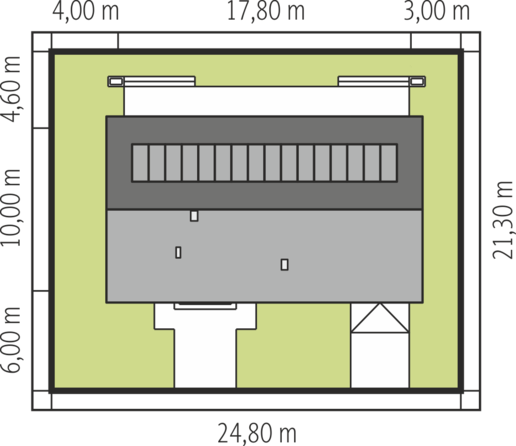 Graficzne opracowanie rzutów poglądowych widocznych na karcie projektu zostało wykonane przez Extradom.pl. Prezentowane przez Extradom.pl wizualizacje wykonane zostały przez autora projektu i należy poczytywać je jedynie za przykład i propozycję wykończenia, wizję architektoniczną autora projektu. Ostateczne wykończenie budynku może nastąpić na wiele sposobów. Szczegółowe rozwiązania zastosowane w oferowanej dokumentacji - w tym również ilość, lokalizacje i wygląd okien, drzwi, kominów - mogą w niewielkim stopniu różnić się od prezentowanej wizualizacji budynku.
