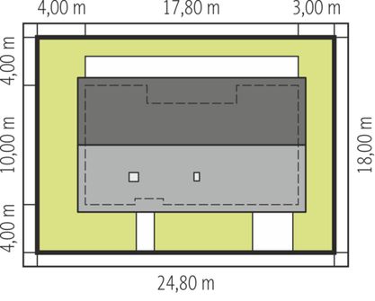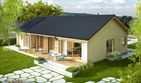 Graficzne opracowanie rzutów poglądowych widocznych na karcie projektu zostało wykonane przez Extradom.pl. Prezentowane przez Extradom.pl wizualizacje wykonane zostały przez autora projektu i należy poczytywać je jedynie za przykład i propozycję wykończenia, wizję architektoniczną autora projektu. Ostateczne wykończenie budynku może nastąpić na wiele sposobów. Szczegółowe rozwiązania zastosowane w oferowanej dokumentacji - w tym również ilość, lokalizacje i wygląd okien, drzwi, kominów - mogą w niewielkim stopniu różnić się od prezentowanej wizualizacji budynku.
