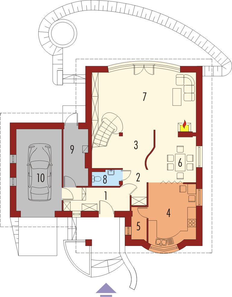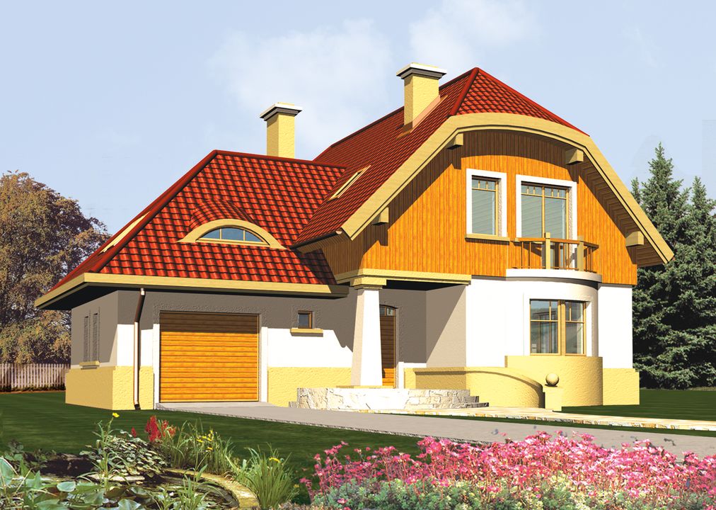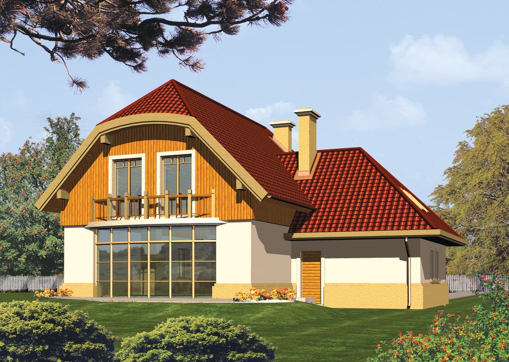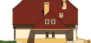 Graficzne opracowanie rzutów poglądowych widocznych na karcie projektu zostało wykonane przez Extradom.pl. Prezentowane przez Extradom.pl wizualizacje wykonane zostały przez autora projektu i należy poczytywać je jedynie za przykład i propozycję wykończenia, wizję architektoniczną autora projektu. Ostateczne wykończenie budynku może nastąpić na wiele sposobów. Szczegółowe rozwiązania zastosowane w oferowanej dokumentacji - w tym również ilość, lokalizacje i wygląd okien, drzwi, kominów - mogą w niewielkim stopniu różnić się od prezentowanej wizualizacji budynku.
