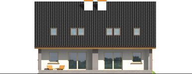 Graficzne opracowanie rzutów poglądowych widocznych na karcie projektu zostało wykonane przez Extradom.pl. Prezentowane przez Extradom.pl wizualizacje wykonane zostały przez autora projektu i należy poczytywać je jedynie za przykład i propozycję wykończenia, wizję architektoniczną autora projektu. Ostateczne wykończenie budynku może nastąpić na wiele sposobów. Szczegółowe rozwiązania zastosowane w oferowanej dokumentacji - w tym również ilość, lokalizacje i wygląd okien, drzwi, kominów - mogą w niewielkim stopniu różnić się od prezentowanej wizualizacji budynku.