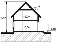 Pokrycie dachu: dwuspadowy. Strop: gęstożebrowy. Ściany: beton komórkowy + docieplenia.