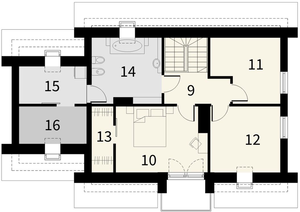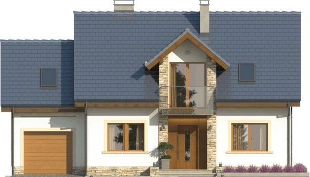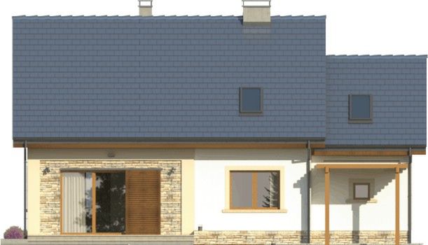 Graficzne opracowanie rzutów poglądowych widocznych na karcie projektu zostało wykonane przez Extradom.pl. Prezentowane przez Extradom.pl wizualizacje wykonane zostały przez autora projektu i należy poczytywać je jedynie za przykład i propozycję wykończenia, wizję architektoniczną autora projektu. Ostateczne wykończenie budynku może nastąpić na wiele sposobów. Szczegółowe rozwiązania zastosowane w oferowanej dokumentacji - w tym również ilość, lokalizacje i wygląd okien, drzwi, kominów - mogą w niewielkim stopniu różnić się od prezentowanej wizualizacji budynku.