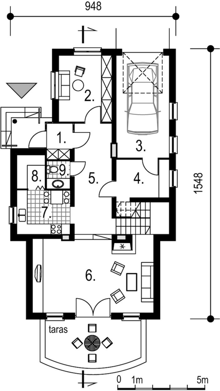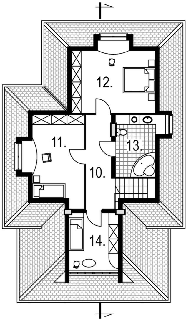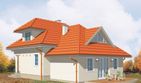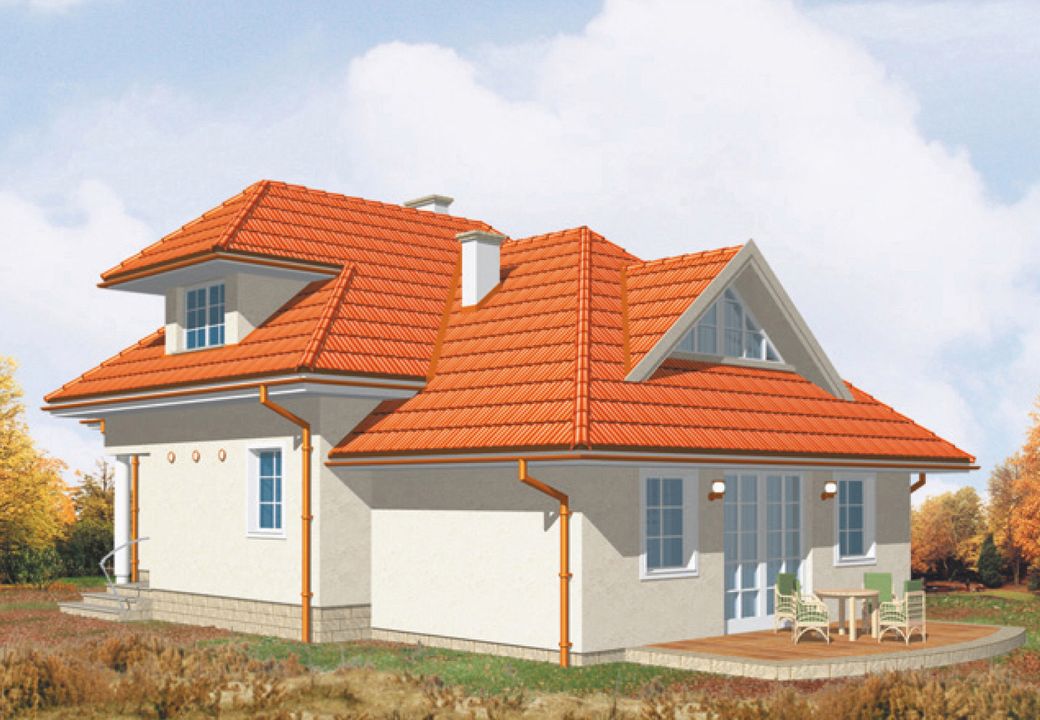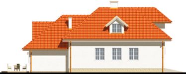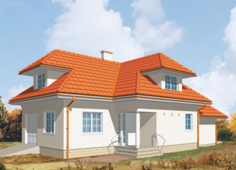 Graficzne opracowanie rzutów poglądowych widocznych na karcie projektu zostało wykonane przez Extradom.pl. Prezentowane przez Extradom.pl wizualizacje wykonane zostały przez autora projektu i należy poczytywać je jedynie za przykład i propozycję wykończenia, wizję architektoniczną autora projektu. Ostateczne wykończenie budynku może nastąpić na wiele sposobów. Szczegółowe rozwiązania zastosowane w oferowanej dokumentacji - w tym również ilość, lokalizacje i wygląd okien, drzwi, kominów - mogą w niewielkim stopniu różnić się od prezentowanej wizualizacji budynku.