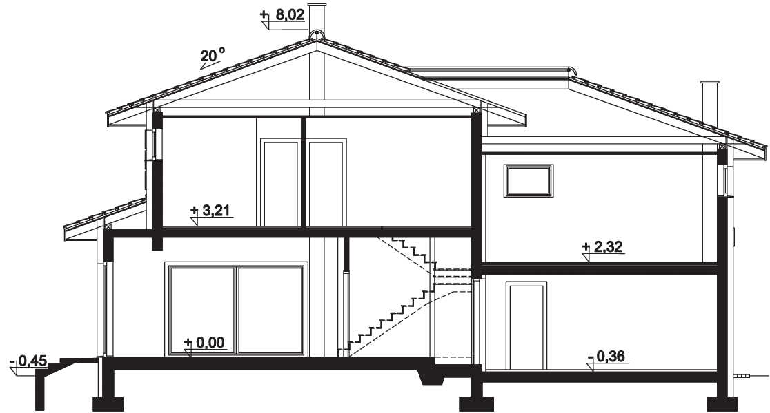 Budynek posadowiony został na fundamentach betonowych. Ściany zewnętrzne dwuwarstwowe z betonu komórkowego. Ściany wewnętrzne z betonu komórkowego jak i z płyty gipsowo-kartonowej [na ruszcie]. Strop żelbetowy-wylewany. Więźba dachowa drewniana - wiązary firmy MiTek. Pokrycie dachu - dachówka ceramiczna lub cementowa. Ogrzewanie gazowe lub na paliwo stałe.