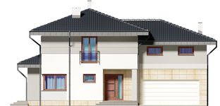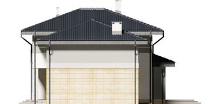 Graficzne opracowanie rzutów poglądowych widocznych na karcie projektu zostało wykonane przez Extradom.pl. Prezentowane przez Extradom.pl wizualizacje wykonane zostały przez autora projektu i należy poczytywać je jedynie za przykład i propozycję wykończenia, wizję architektoniczną autora projektu. Ostateczne wykończenie budynku może nastąpić na wiele sposobów. Szczegółowe rozwiązania zastosowane w oferowanej dokumentacji - w tym również ilość, lokalizacje i wygląd okien, drzwi, kominów - mogą w niewielkim stopniu różnić się od prezentowanej wizualizacji budynku.