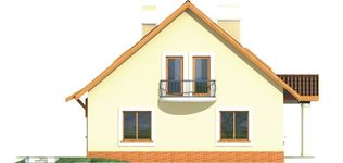 Graficzne opracowanie rzutów poglądowych widocznych na karcie projektu zostało wykonane przez Extradom.pl. Prezentowane przez Extradom.pl wizualizacje wykonane zostały przez autora projektu i należy poczytywać je jedynie za przykład i propozycję wykończenia, wizję architektoniczną autora projektu. Ostateczne wykończenie budynku może nastąpić na wiele sposobów. Szczegółowe rozwiązania zastosowane w oferowanej dokumentacji - w tym również ilość, lokalizacje i wygląd okien, drzwi, kominów - mogą w niewielkim stopniu różnić się od prezentowanej wizualizacji budynku.