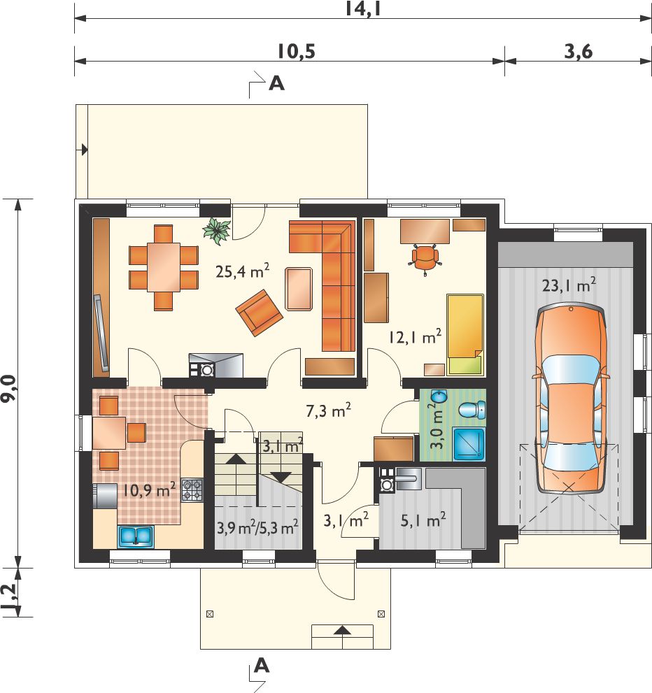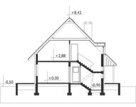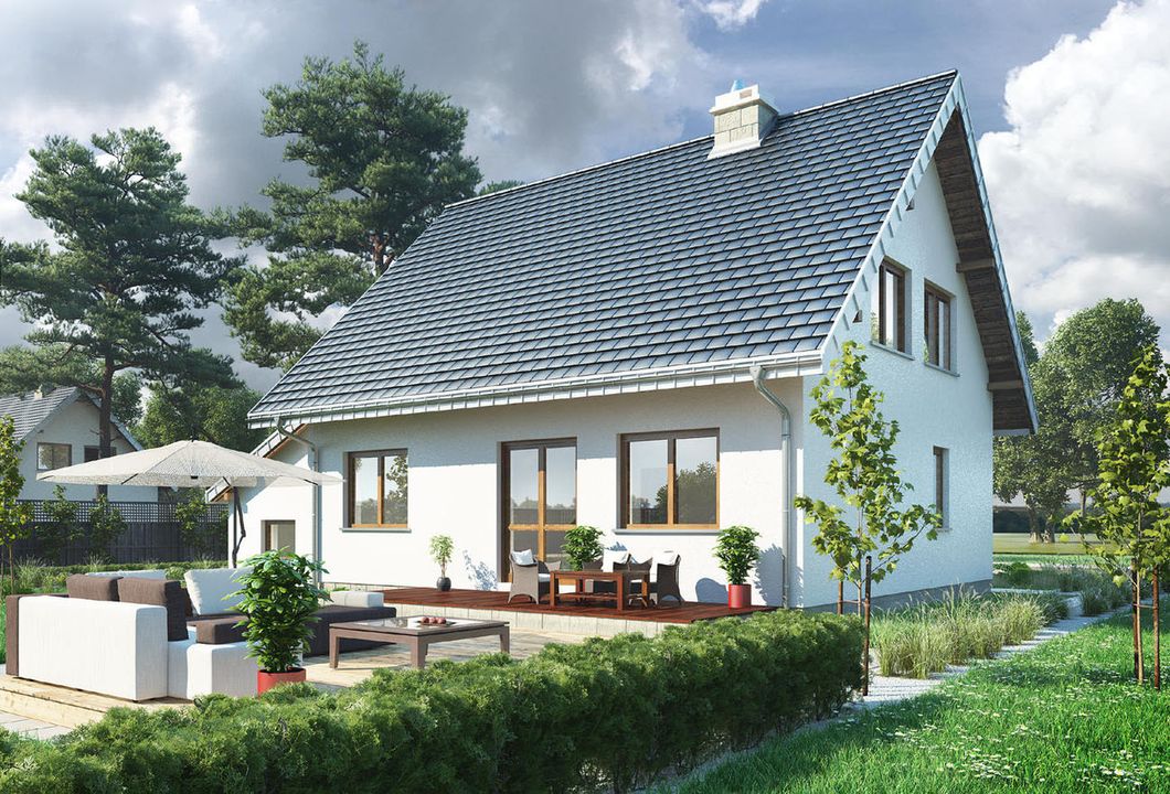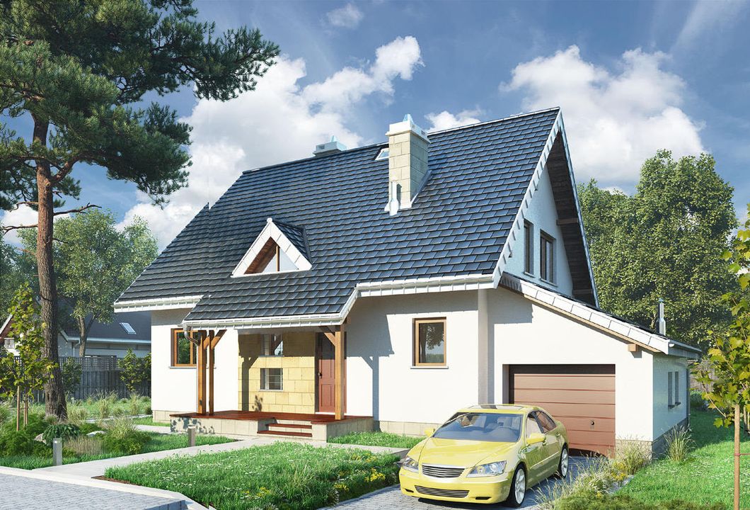 Graficzne opracowanie rzutów poglądowych widocznych na karcie projektu zostało wykonane przez Extradom.pl. Prezentowane przez Extradom.pl wizualizacje wykonane zostały przez autora projektu i należy poczytywać je jedynie za przykład i propozycję wykończenia, wizję architektoniczną autora projektu. Ostateczne wykończenie budynku może nastąpić na wiele sposobów. Szczegółowe rozwiązania zastosowane w oferowanej dokumentacji - w tym również ilość, lokalizacje i wygląd okien, drzwi, kominów - mogą w niewielkim stopniu różnić się od prezentowanej wizualizacji budynku.
