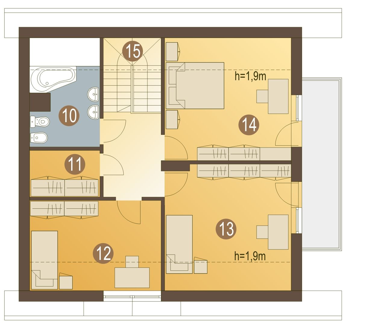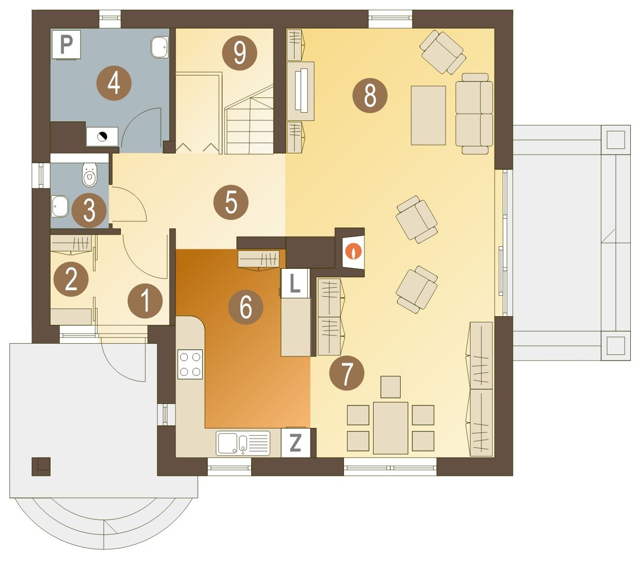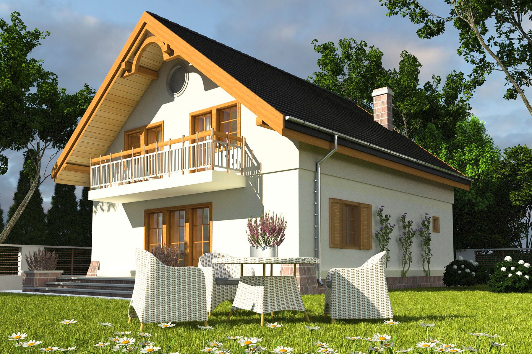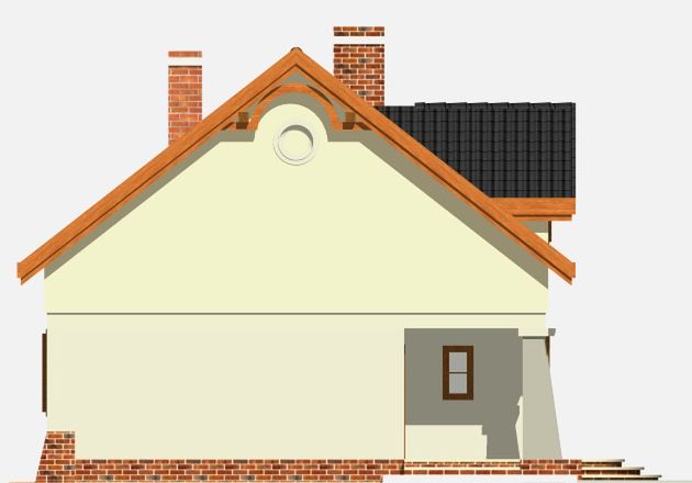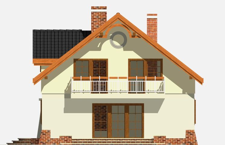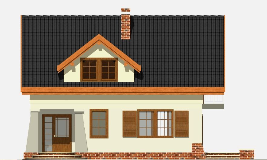 Graficzne opracowanie rzutów poglądowych widocznych na karcie projektu zostało wykonane przez Extradom.pl. Prezentowane przez Extradom.pl wizualizacje wykonane zostały przez autora projektu i należy poczytywać je jedynie za przykład i propozycję wykończenia, wizję architektoniczną autora projektu. Ostateczne wykończenie budynku może nastąpić na wiele sposobów. Szczegółowe rozwiązania zastosowane w oferowanej dokumentacji - w tym również ilość, lokalizacje i wygląd okien, drzwi, kominów - mogą w niewielkim stopniu różnić się od prezentowanej wizualizacji budynku.