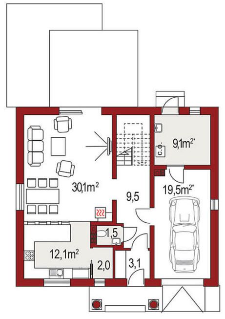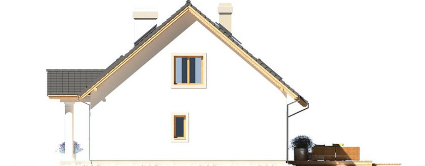 Graficzne opracowanie rzutów poglądowych widocznych na karcie projektu zostało wykonane przez Extradom.pl. Prezentowane przez Extradom.pl wizualizacje wykonane zostały przez autora projektu i należy poczytywać je jedynie za przykład i propozycję wykończenia, wizję architektoniczną autora projektu. Ostateczne wykończenie budynku może nastąpić na wiele sposobów. Szczegółowe rozwiązania zastosowane w oferowanej dokumentacji - w tym również ilość, lokalizacje i wygląd okien, drzwi, kominów - mogą w niewielkim stopniu różnić się od prezentowanej wizualizacji budynku.