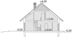 Ściany: bloczek z betonu komórkowego 24 cm, styropian Termo Organika 20 cm, tynk. Strop: Teriva 1. Dach: dwuspadowy, nachylenie 40 st., więźba drewniana, dachówka ceramiczna. Ocieplenie dachu: wełna mineralna ISOVER Uni Mata. Ogrzewanie: gazowe, paliwo stałe ( płatny dodatek). Okna dachowe: VELUX.