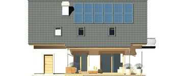 Graficzne opracowanie rzutów poglądowych widocznych na karcie projektu zostało wykonane przez Extradom.pl. Prezentowane przez Extradom.pl wizualizacje wykonane zostały przez autora projektu i należy poczytywać je jedynie za przykład i propozycję wykończenia, wizję architektoniczną autora projektu. Ostateczne wykończenie budynku może nastąpić na wiele sposobów. Szczegółowe rozwiązania zastosowane w oferowanej dokumentacji - w tym również ilość, lokalizacje i wygląd okien, drzwi, kominów - mogą w niewielkim stopniu różnić się od prezentowanej wizualizacji budynku.