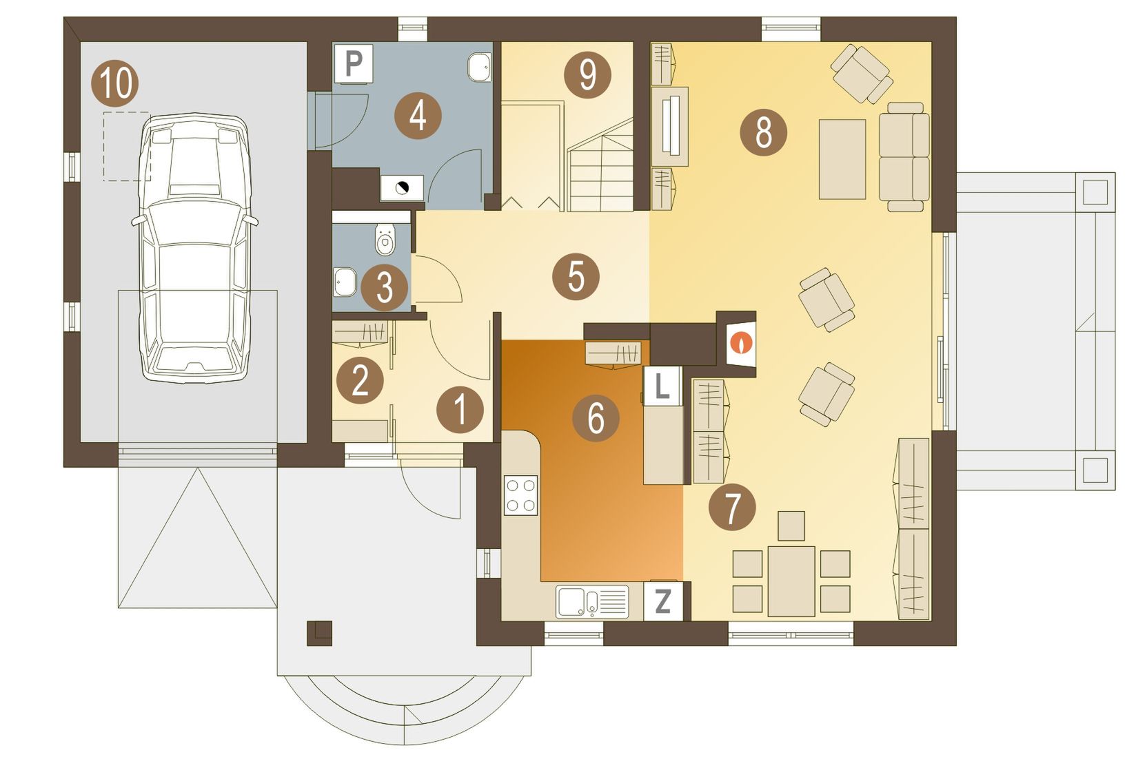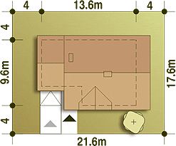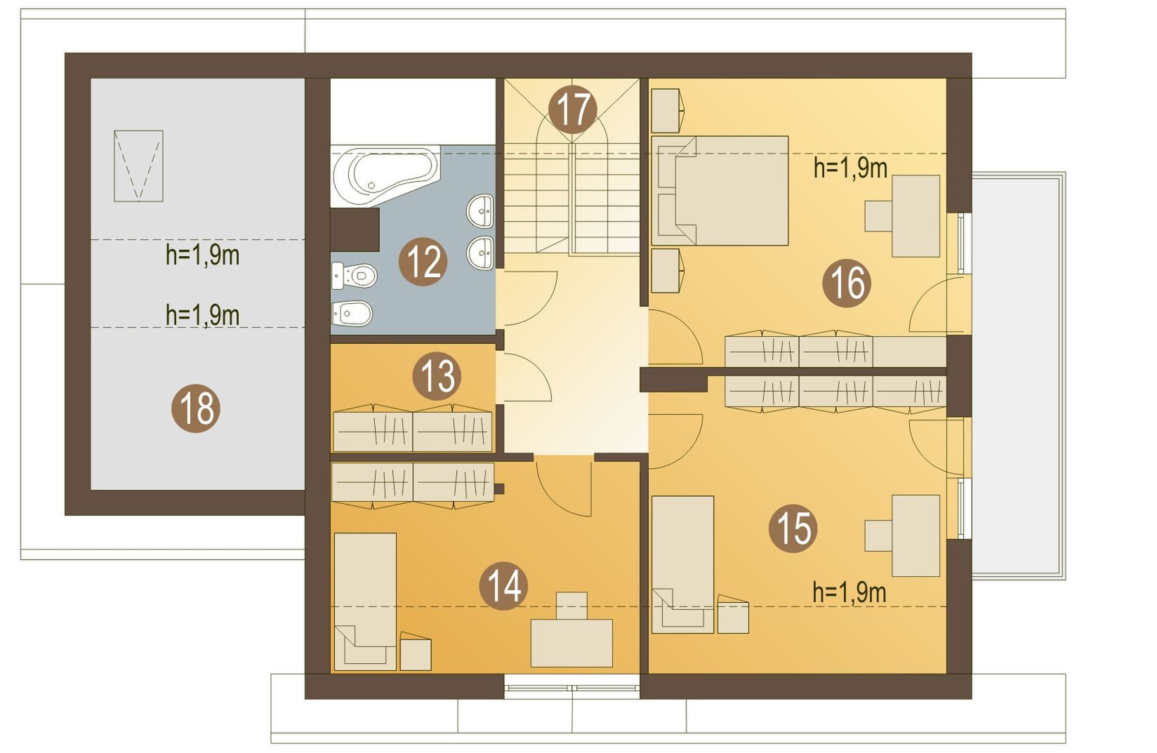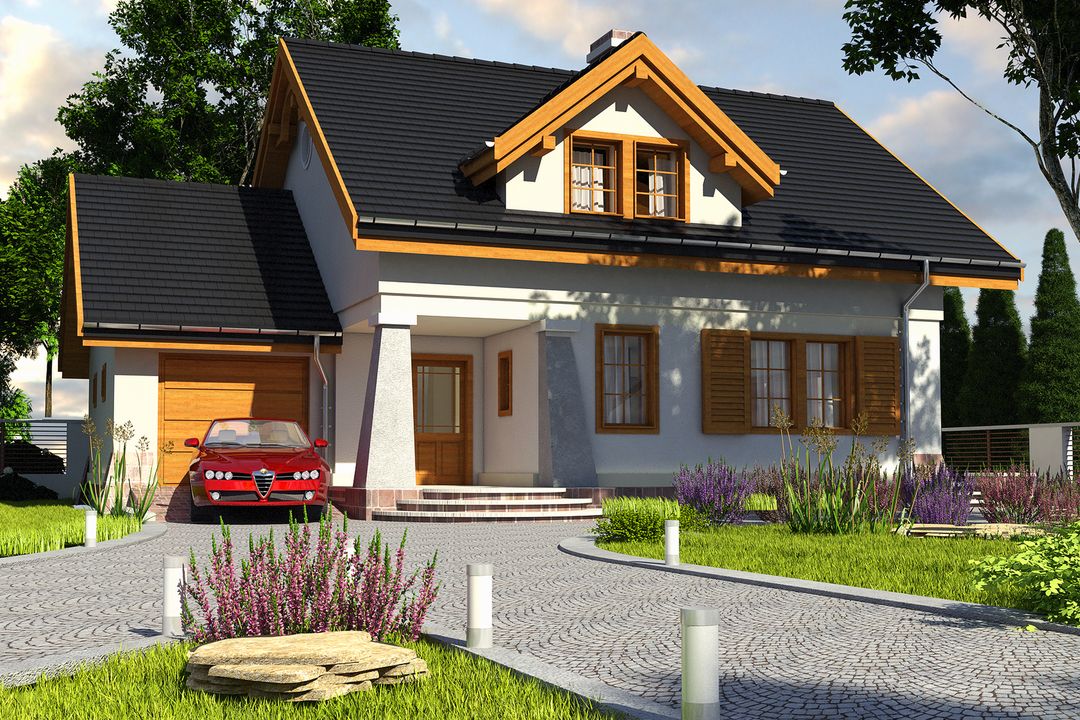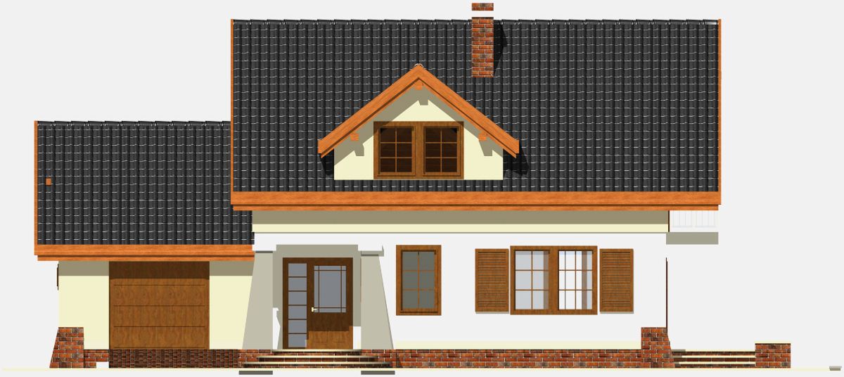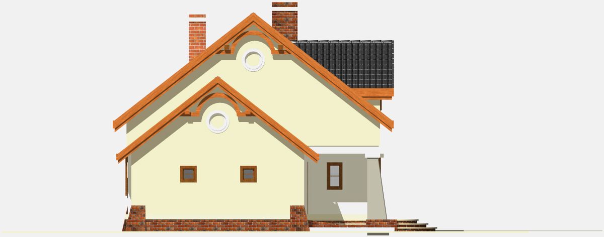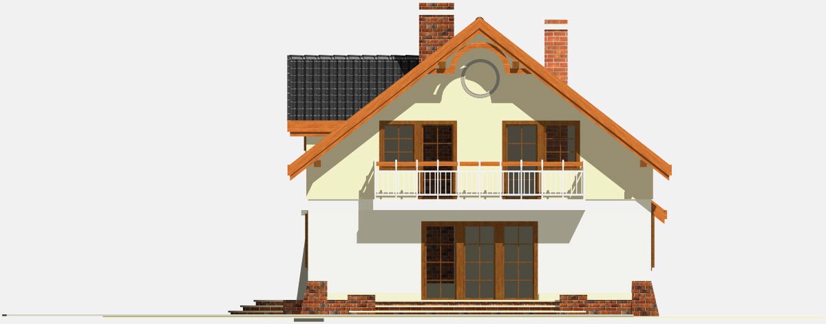 Graficzne opracowanie rzutów poglądowych widocznych na karcie projektu zostało wykonane przez Extradom.pl. Prezentowane przez Extradom.pl wizualizacje wykonane zostały przez autora projektu i należy poczytywać je jedynie za przykład i propozycję wykończenia, wizję architektoniczną autora projektu. Ostateczne wykończenie budynku może nastąpić na wiele sposobów. Szczegółowe rozwiązania zastosowane w oferowanej dokumentacji - w tym również ilość, lokalizacje i wygląd okien, drzwi, kominów - mogą w niewielkim stopniu różnić się od prezentowanej wizualizacji budynku.