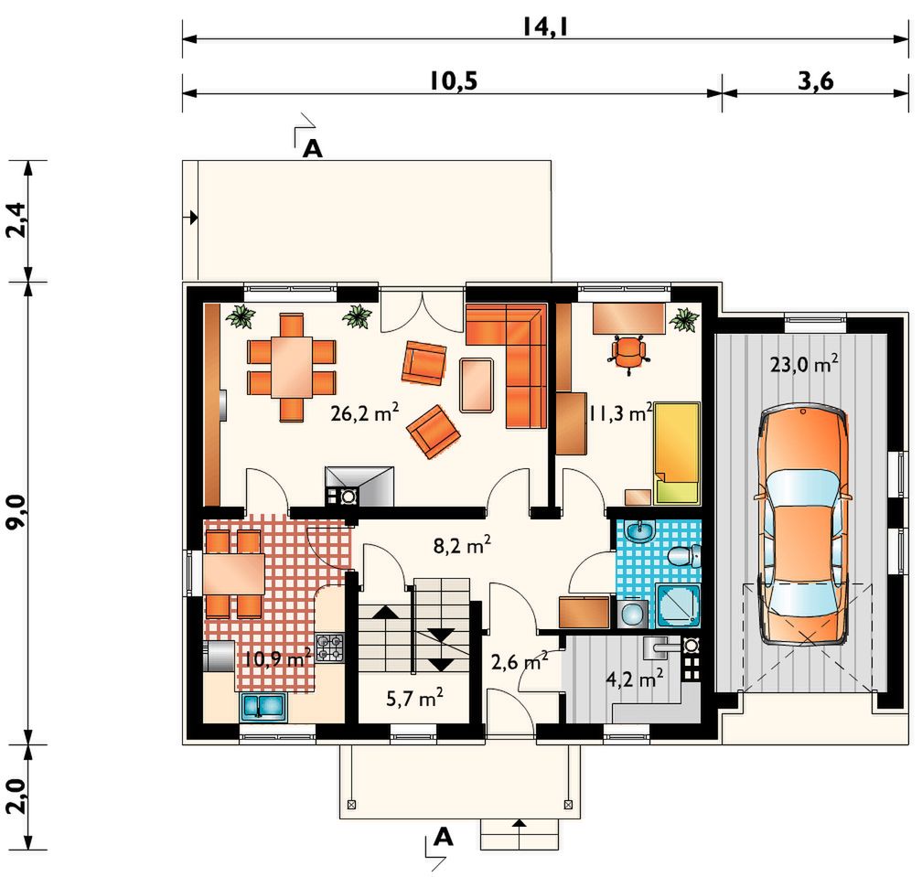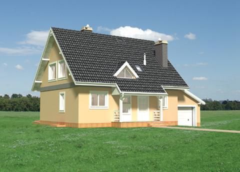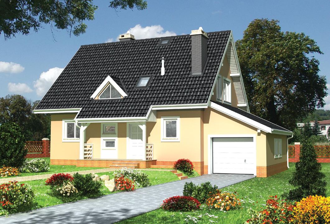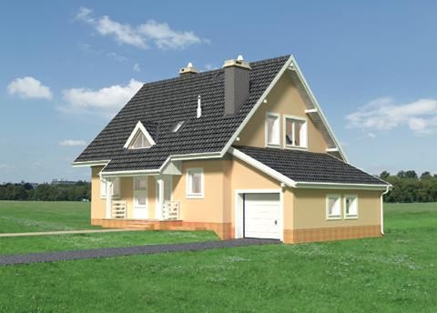 Graficzne opracowanie rzutów poglądowych widocznych na karcie projektu zostało wykonane przez Extradom.pl. Prezentowane przez Extradom.pl wizualizacje wykonane zostały przez autora projektu i należy poczytywać je jedynie za przykład i propozycję wykończenia, wizję architektoniczną autora projektu. Ostateczne wykończenie budynku może nastąpić na wiele sposobów. Szczegółowe rozwiązania zastosowane w oferowanej dokumentacji - w tym również ilość, lokalizacje i wygląd okien, drzwi, kominów - mogą w niewielkim stopniu różnić się od prezentowanej wizualizacji budynku.