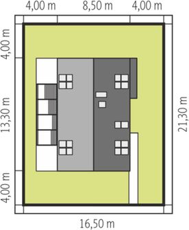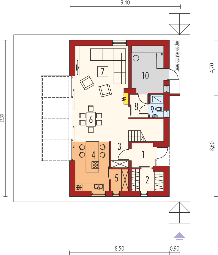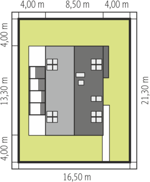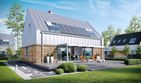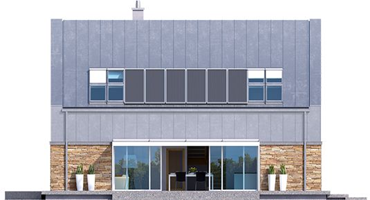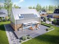 Graficzne opracowanie rzutów poglądowych widocznych na karcie projektu zostało wykonane przez Extradom.pl. Prezentowane przez Extradom.pl wizualizacje wykonane zostały przez autora projektu i należy poczytywać je jedynie za przykład i propozycję wykończenia, wizję architektoniczną autora projektu. Ostateczne wykończenie budynku może nastąpić na wiele sposobów. Szczegółowe rozwiązania zastosowane w oferowanej dokumentacji - w tym również ilość, lokalizacje i wygląd okien, drzwi, kominów - mogą w niewielkim stopniu różnić się od prezentowanej wizualizacji budynku.