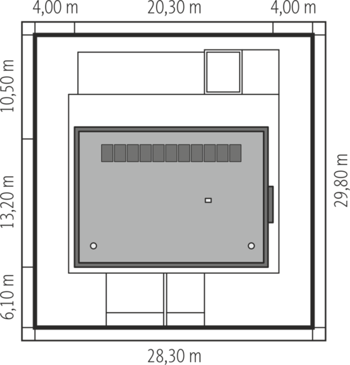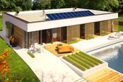 - Technologia murowana, ściany zewnętrzne dwuwarstwowe, docieplenie grubości 25 cm - Strop gęstożebrowy - Dach w technologii stropodachu odwróconego - W projekcie zastosowano rozwiązania technologiczne Wykończenie: - Elewacje: tynk cienkowarstwowy mineralny , okładzina kamienna oraz drewniana - Stolarka okienna: aluminiowa