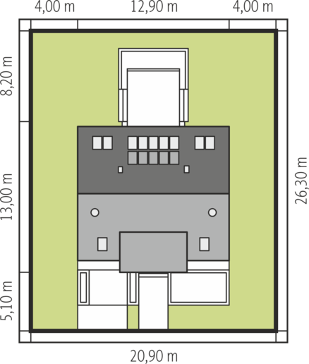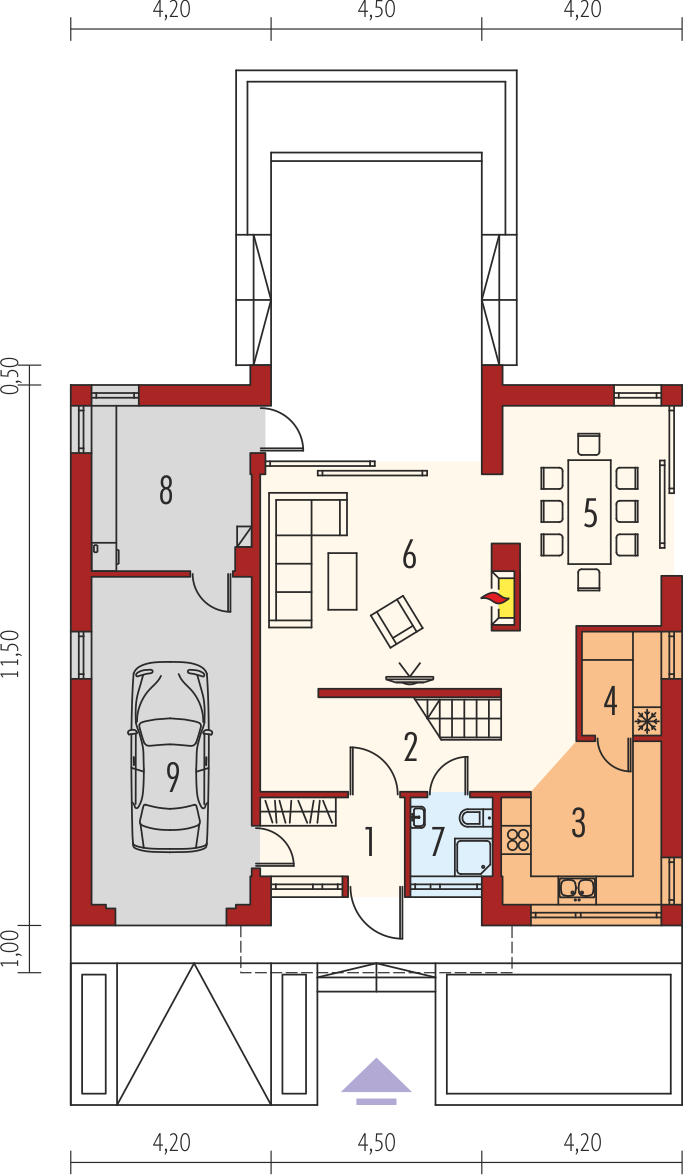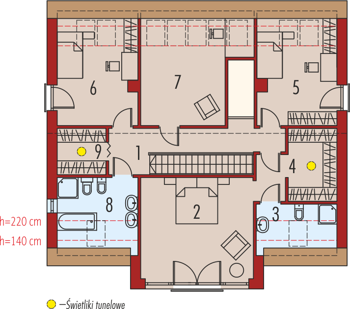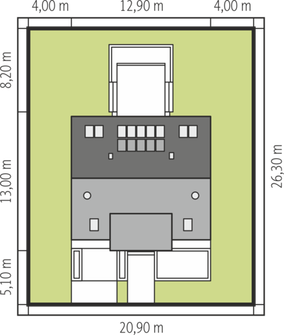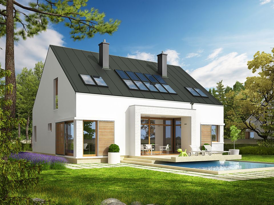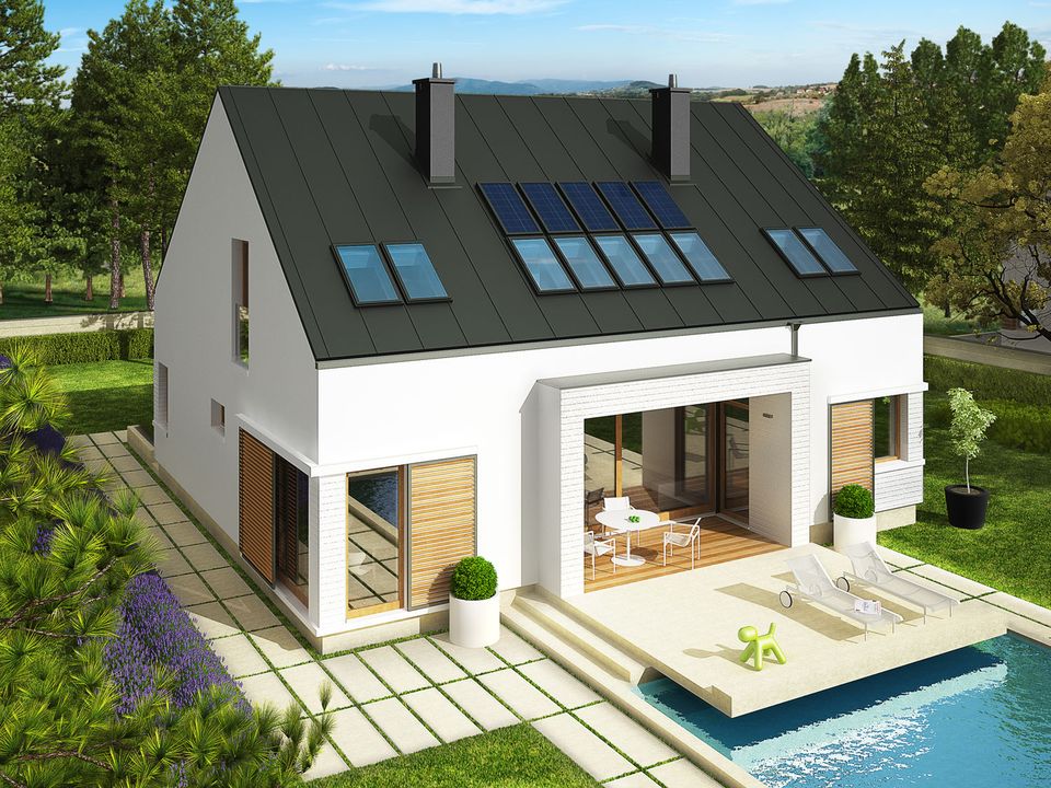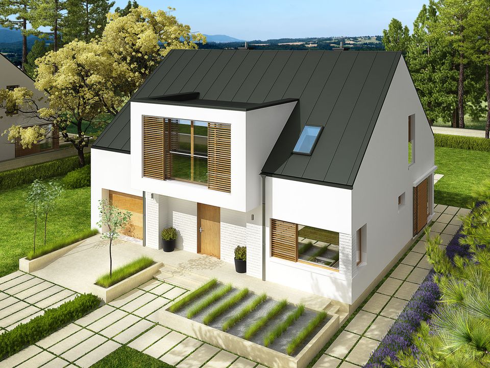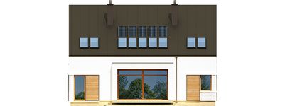 Graficzne opracowanie rzutów poglądowych widocznych na karcie projektu zostało wykonane przez Extradom.pl. Prezentowane przez Extradom.pl wizualizacje wykonane zostały przez autora projektu i należy poczytywać je jedynie za przykład i propozycję wykończenia, wizję architektoniczną autora projektu. Ostateczne wykończenie budynku może nastąpić na wiele sposobów. Szczegółowe rozwiązania zastosowane w oferowanej dokumentacji - w tym również ilość, lokalizacje i wygląd okien, drzwi, kominów - mogą w niewielkim stopniu różnić się od prezentowanej wizualizacji budynku.