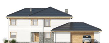 Graficzne opracowanie rzutów poglądowych widocznych na karcie projektu zostało wykonane przez Extradom.pl. Prezentowane przez Extradom.pl wizualizacje wykonane zostały przez autora projektu i należy poczytywać je jedynie za przykład i propozycję wykończenia, wizję architektoniczną autora projektu. Ostateczne wykończenie budynku może nastąpić na wiele sposobów. Szczegółowe rozwiązania zastosowane w oferowanej dokumentacji - w tym również ilość, lokalizacje i wygląd okien, drzwi, kominów - mogą w niewielkim stopniu różnić się od prezentowanej wizualizacji budynku.