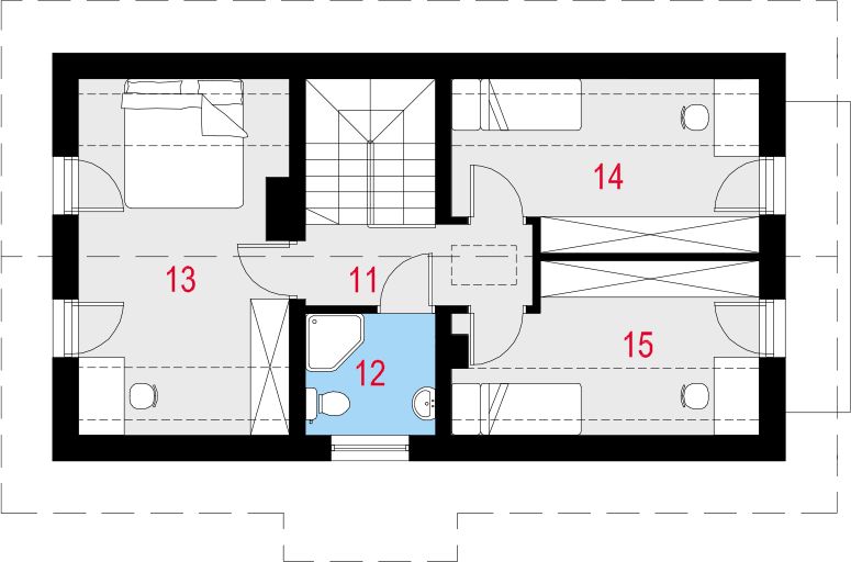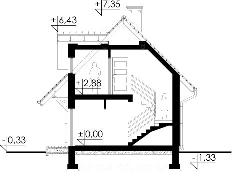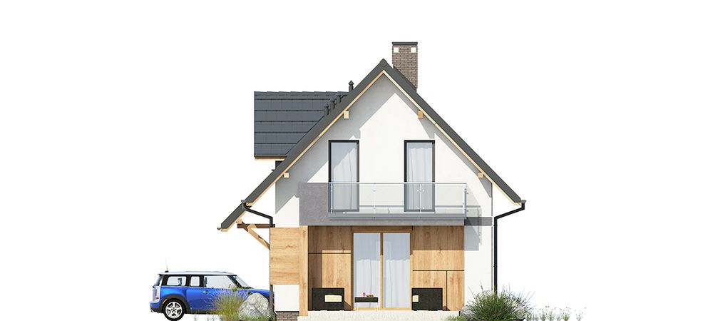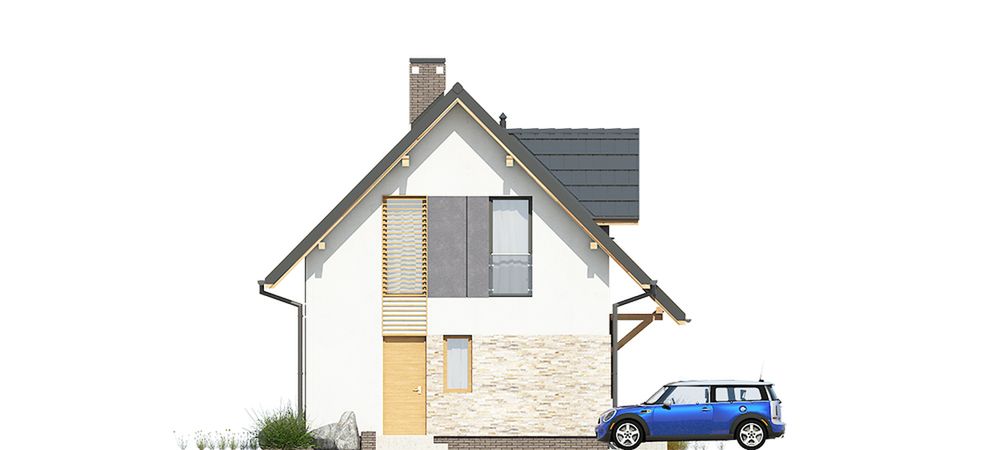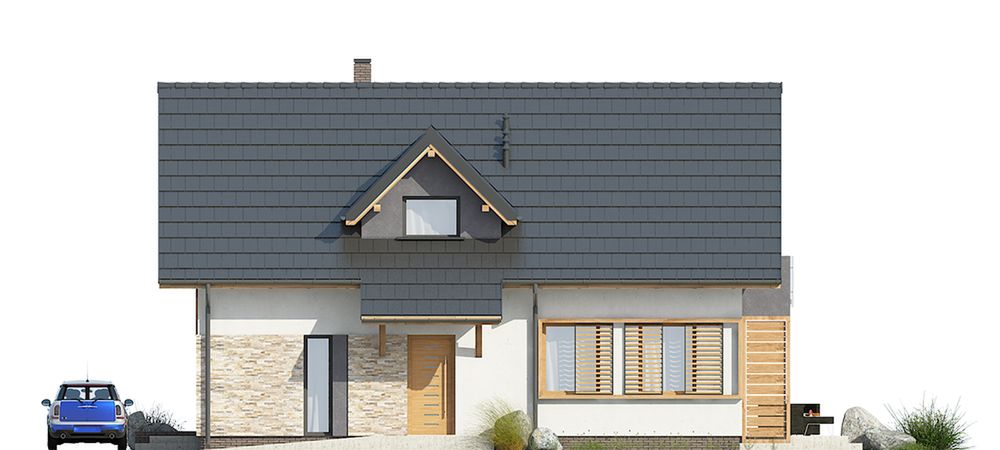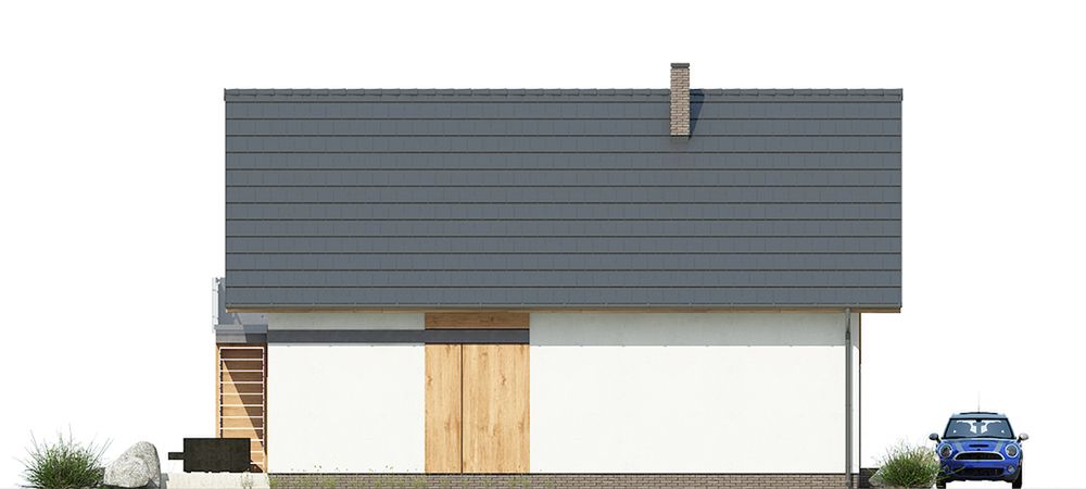 Graficzne opracowanie rzutów poglądowych widocznych na karcie projektu zostało wykonane przez Extradom.pl. Prezentowane przez Extradom.pl wizualizacje wykonane zostały przez autora projektu i należy poczytywać je jedynie za przykład i propozycję wykończenia, wizję architektoniczną autora projektu. Ostateczne wykończenie budynku może nastąpić na wiele sposobów. Szczegółowe rozwiązania zastosowane w oferowanej dokumentacji - w tym również ilość, lokalizacje i wygląd okien, drzwi, kominów - mogą w niewielkim stopniu różnić się od prezentowanej wizualizacji budynku.