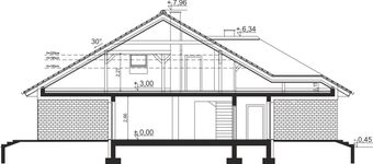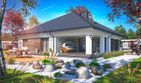 Graficzne opracowanie rzutów poglądowych widocznych na karcie projektu zostało wykonane przez Extradom.pl. Prezentowane przez Extradom.pl wizualizacje wykonane zostały przez autora projektu i należy poczytywać je jedynie za przykład i propozycję wykończenia, wizję architektoniczną autora projektu. Ostateczne wykończenie budynku może nastąpić na wiele sposobów. Szczegółowe rozwiązania zastosowane w oferowanej dokumentacji - w tym również ilość, lokalizacje i wygląd okien, drzwi, kominów - mogą w niewielkim stopniu różnić się od prezentowanej wizualizacji budynku.