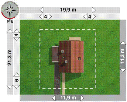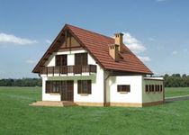 Graficzne opracowanie rzutów poglądowych widocznych na karcie projektu zostało wykonane przez Extradom.pl. Prezentowane przez Extradom.pl wizualizacje wykonane zostały przez autora projektu i należy poczytywać je jedynie za przykład i propozycję wykończenia, wizję architektoniczną autora projektu. Ostateczne wykończenie budynku może nastąpić na wiele sposobów. Szczegółowe rozwiązania zastosowane w oferowanej dokumentacji - w tym również ilość, lokalizacje i wygląd okien, drzwi, kominów - mogą w niewielkim stopniu różnić się od prezentowanej wizualizacji budynku.