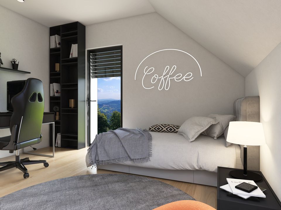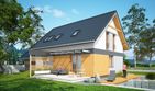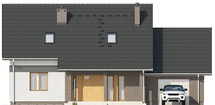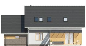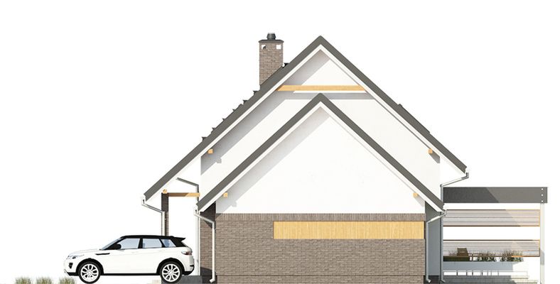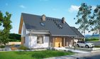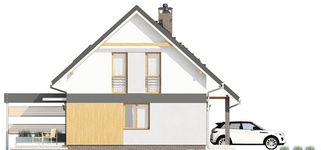 Graficzne opracowanie rzutów poglądowych widocznych na karcie projektu zostało wykonane przez Extradom.pl. Prezentowane przez Extradom.pl wizualizacje wykonane zostały przez autora projektu i należy poczytywać je jedynie za przykład i propozycję wykończenia, wizję architektoniczną autora projektu. Ostateczne wykończenie budynku może nastąpić na wiele sposobów. Szczegółowe rozwiązania zastosowane w oferowanej dokumentacji - w tym również ilość, lokalizacje i wygląd okien, drzwi, kominów - mogą w niewielkim stopniu różnić się od prezentowanej wizualizacji budynku.