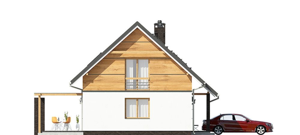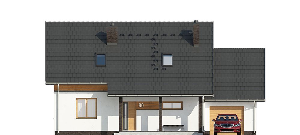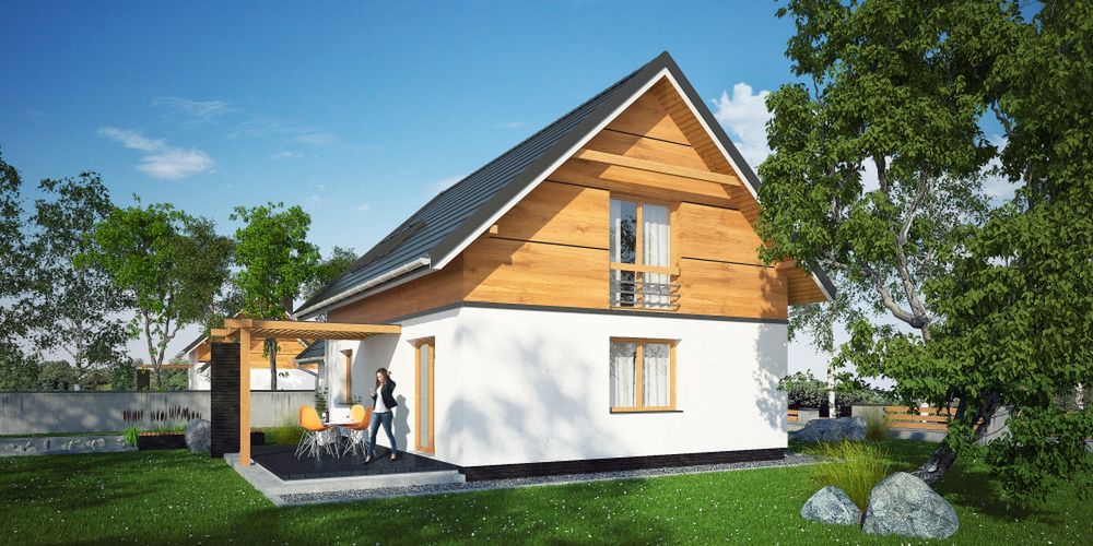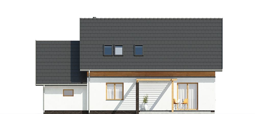 Graficzne opracowanie rzutów poglądowych widocznych na karcie projektu zostało wykonane przez Extradom.pl. Prezentowane przez Extradom.pl wizualizacje wykonane zostały przez autora projektu i należy poczytywać je jedynie za przykład i propozycję wykończenia, wizję architektoniczną autora projektu. Ostateczne wykończenie budynku może nastąpić na wiele sposobów. Szczegółowe rozwiązania zastosowane w oferowanej dokumentacji - w tym również ilość, lokalizacje i wygląd okien, drzwi, kominów - mogą w niewielkim stopniu różnić się od prezentowanej wizualizacji budynku.