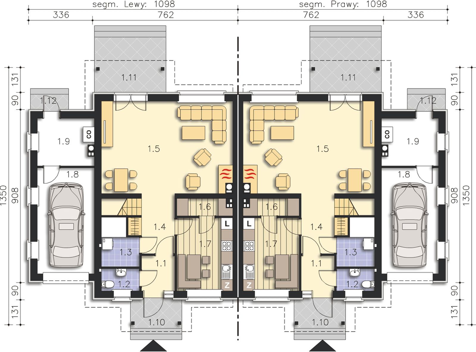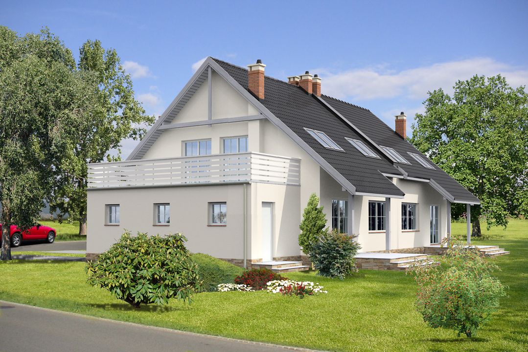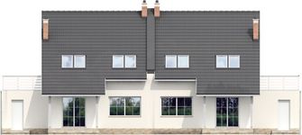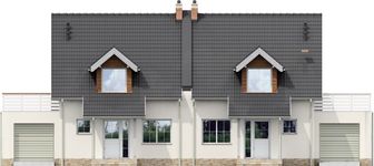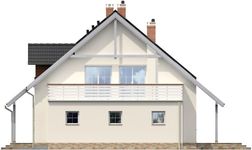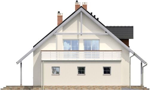 Graficzne opracowanie rzutów poglądowych widocznych na karcie projektu zostało wykonane przez Extradom.pl. Prezentowane przez Extradom.pl wizualizacje wykonane zostały przez autora projektu i należy poczytywać je jedynie za przykład i propozycję wykończenia, wizję architektoniczną autora projektu. Ostateczne wykończenie budynku może nastąpić na wiele sposobów. Szczegółowe rozwiązania zastosowane w oferowanej dokumentacji - w tym również ilość, lokalizacje i wygląd okien, drzwi, kominów - mogą w niewielkim stopniu różnić się od prezentowanej wizualizacji budynku.