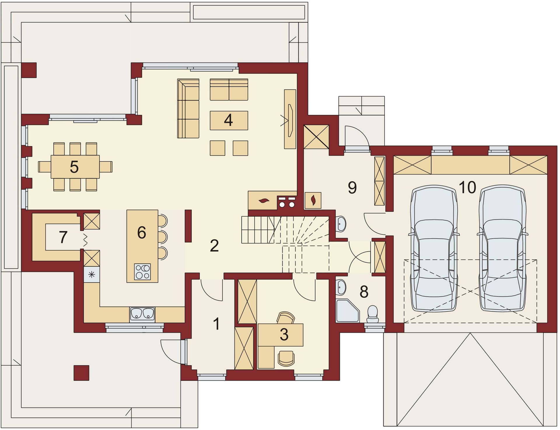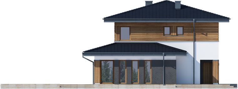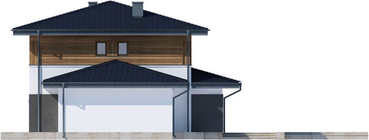 Graficzne opracowanie rzutów poglądowych widocznych na karcie projektu zostało wykonane przez Extradom.pl. Prezentowane przez Extradom.pl wizualizacje wykonane zostały przez autora projektu i należy poczytywać je jedynie za przykład i propozycję wykończenia, wizję architektoniczną autora projektu. Ostateczne wykończenie budynku może nastąpić na wiele sposobów. Szczegółowe rozwiązania zastosowane w oferowanej dokumentacji - w tym również ilość, lokalizacje i wygląd okien, drzwi, kominów - mogą w niewielkim stopniu różnić się od prezentowanej wizualizacji budynku.
