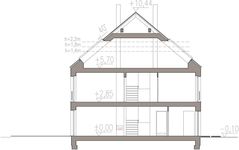 Graficzne opracowanie rzutów poglądowych widocznych na karcie projektu zostało wykonane przez Extradom.pl. Prezentowane przez Extradom.pl wizualizacje wykonane zostały przez autora projektu i należy poczytywać je jedynie za przykład i propozycję wykończenia, wizję architektoniczną autora projektu. Ostateczne wykończenie budynku może nastąpić na wiele sposobów. Szczegółowe rozwiązania zastosowane w oferowanej dokumentacji - w tym również ilość, lokalizacje i wygląd okien, drzwi, kominów - mogą w niewielkim stopniu różnić się od prezentowanej wizualizacji budynku.